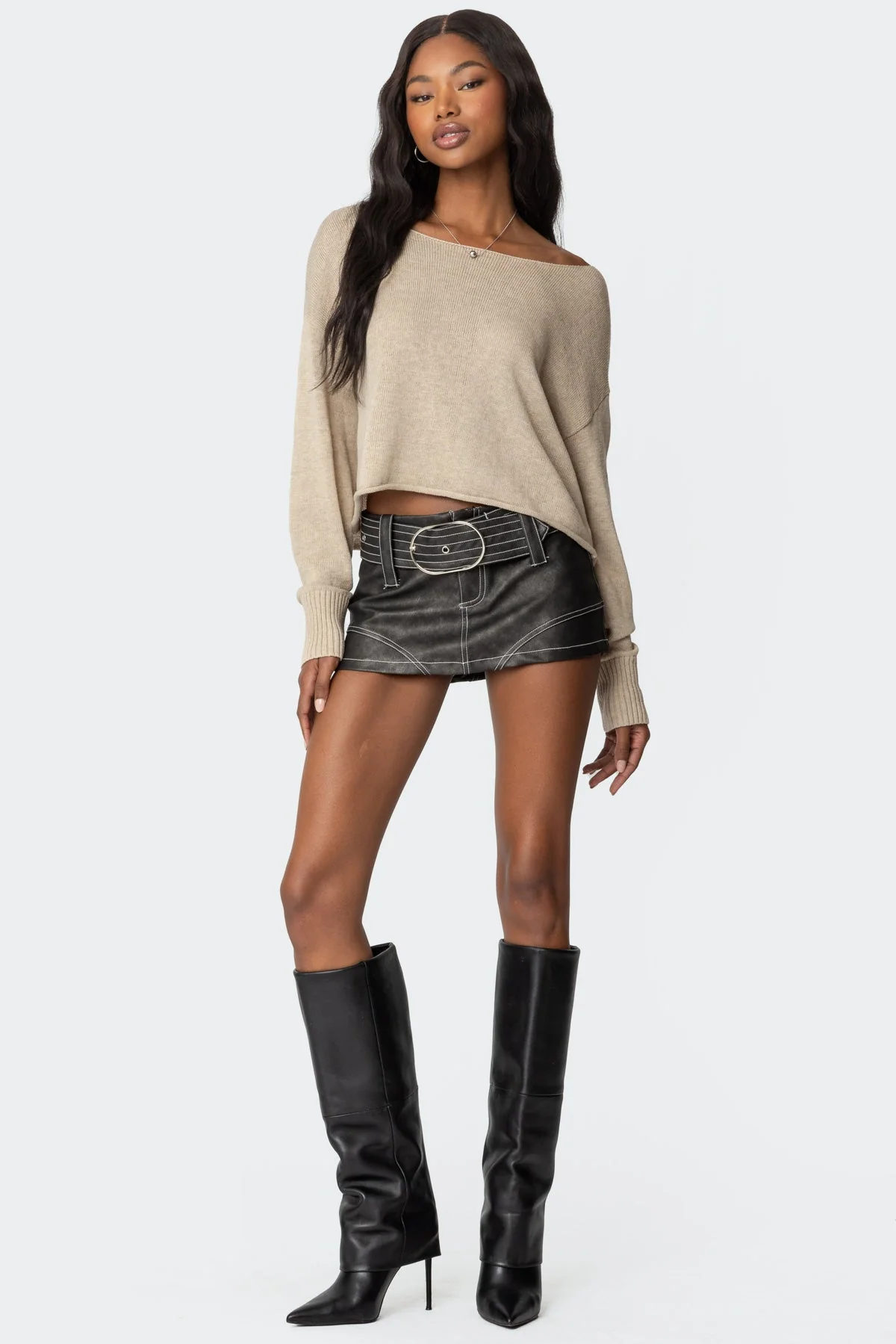 The Black Washed Faux Leather Mini Skort is a trendy must-have for women. Featuring a detachable belt design and contrast stitching, made from high-quality washed faux leather fabric (Polyurethane, Polyester blend). This stylish skort offers a chic twist to your outfit. Model wears size S. Model height is 59. Care instructions: Machine wash at maximum 30ºC, do not bleach, do not tumble dry, do not iron, do not dry clean.