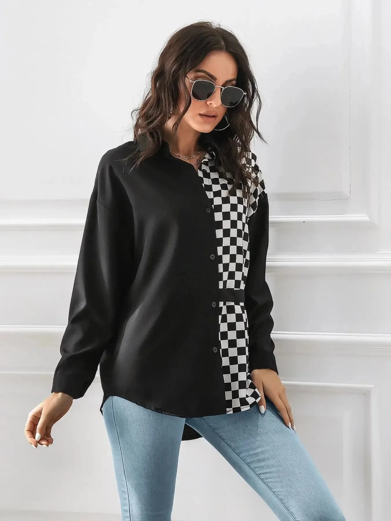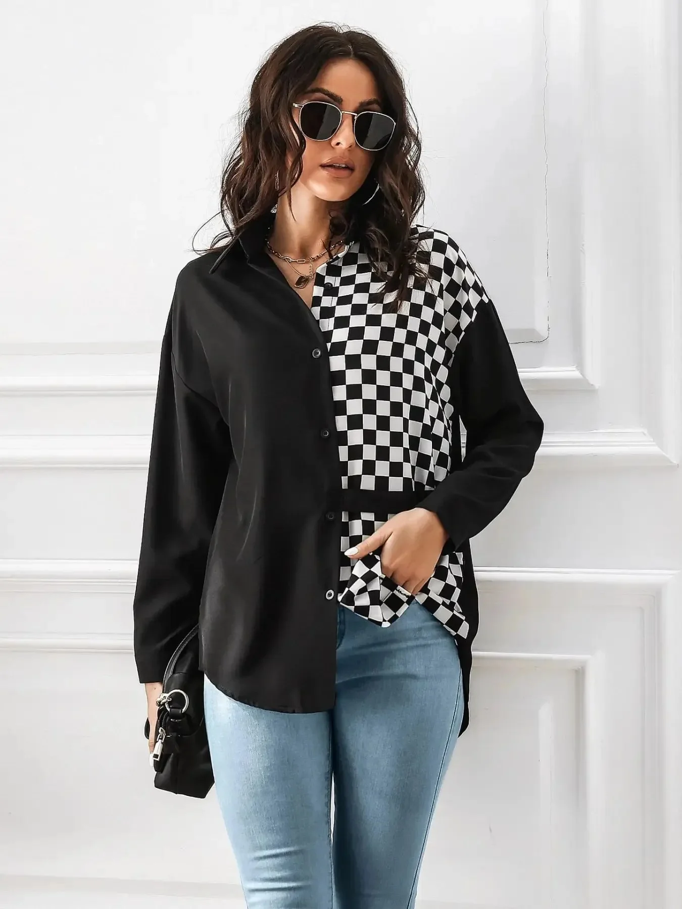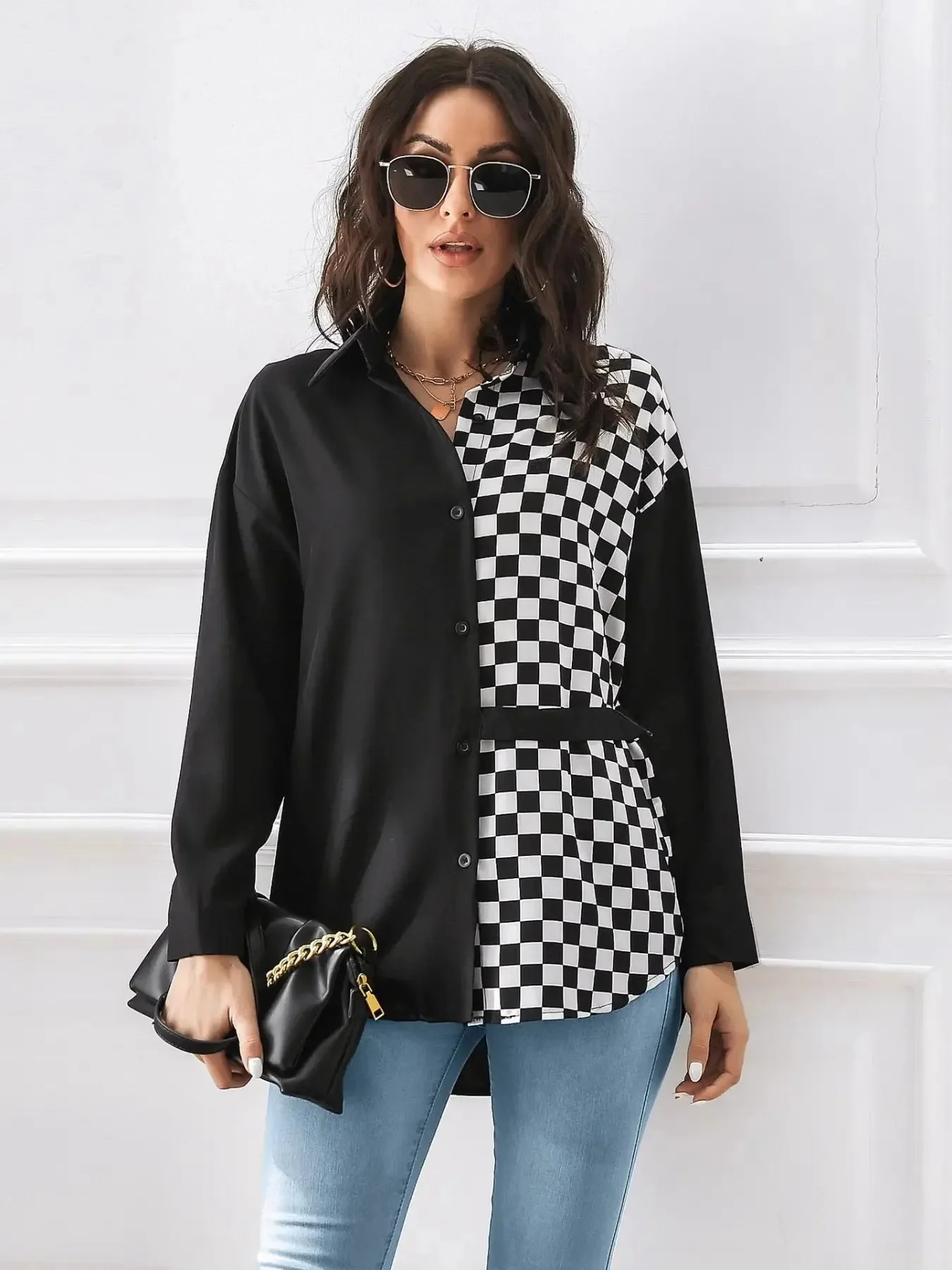 Elevate your style with our Black & White Checkered Hoodie Shirt, featuring a striking checkerboard design, crafted from a comfortable cotton blend. This fashion-forward shirt offers a relaxed fit, kangaroo pocket, and durable construction. Perfect for casual and street fashion, the asymmetrical pattern placement adds modern flair. Stay comfortable and stylish every day! Buttoned closure. No stretch. Material: 100% cotton. Machine wash cold, tumble dry low. Imported.