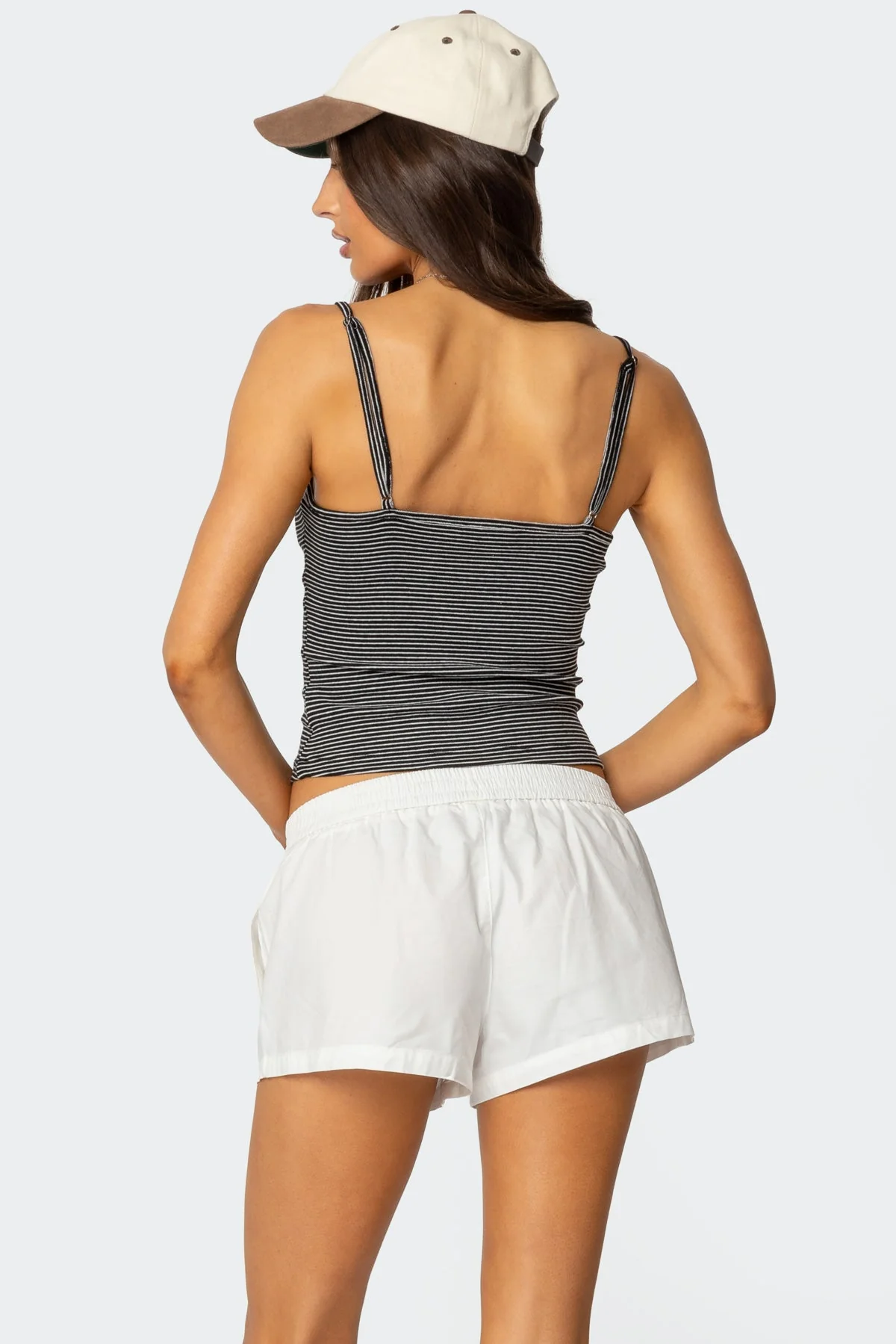 Elevate your loungewear collection with this black and white striped tank top featuring adjustable straps and a stylish Henley design. Made from a blend of cotton and spandex for ultimate comfort. Perfect for casual outings and relaxed days at home. This tank top is machine washable for easy care. Available in sizes XS, S, M, L, and XL.