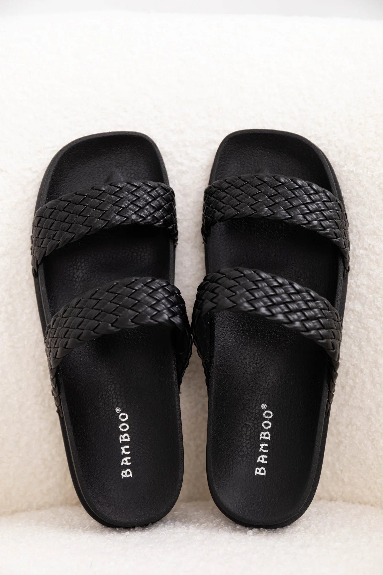 Black Woven Slide Sandals – Comfortable Lightweight Shoes