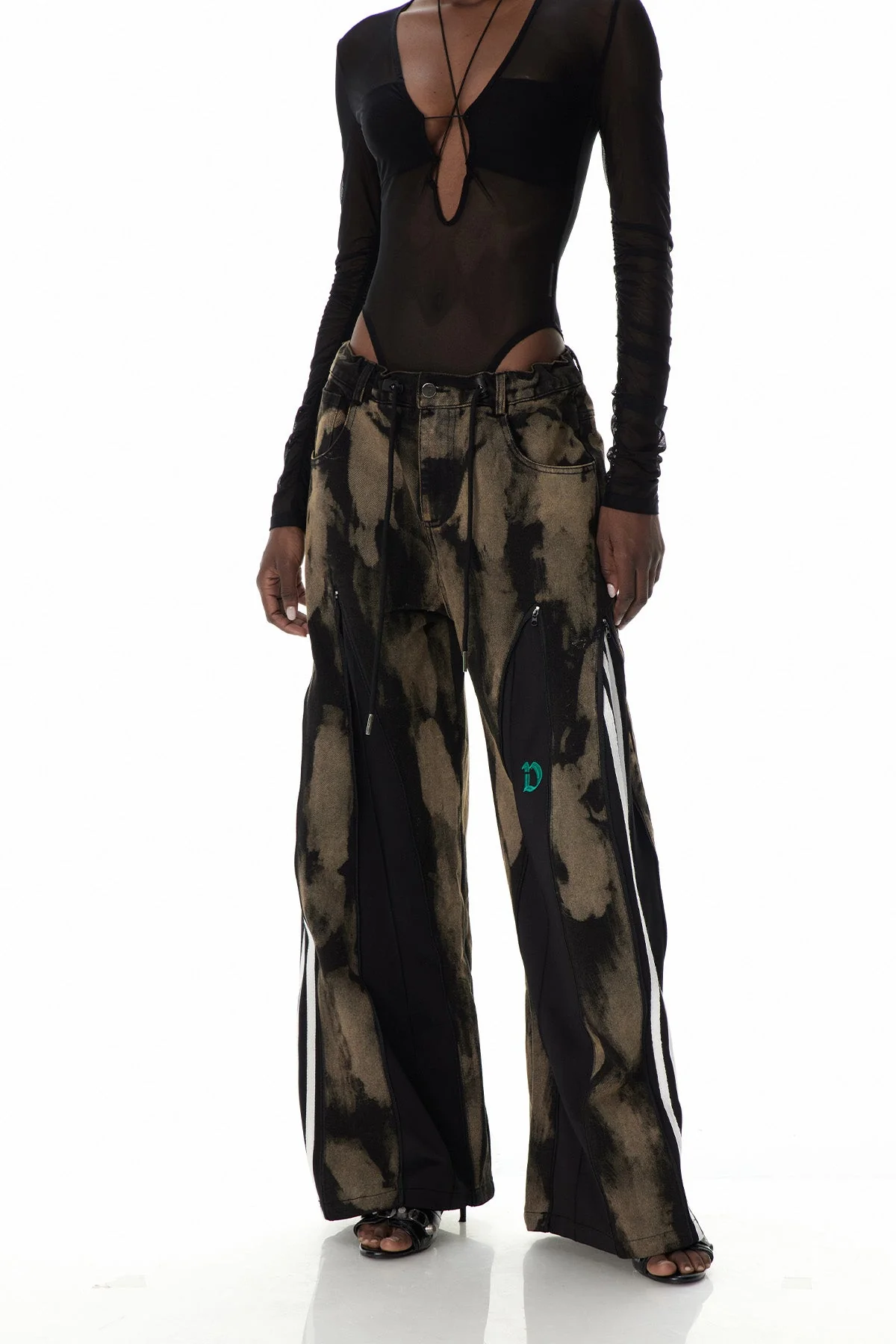 Experience the bold design and expert tailoring of these Black Zipper Tie Dye Jeans. Crafted with a subtle tie-dye pattern, modern front zipper detail, and durable comfort, these jeans offer a unique aesthetic for fashion-forward individuals. Make a statement with this sophisticated, versatile denim choice that combines style and functionality seamlessly. *Stretch Factor*: Non-stretch. *Care Instructions*: Gentle machine wash. Please note, color may vary due to lighting in images.