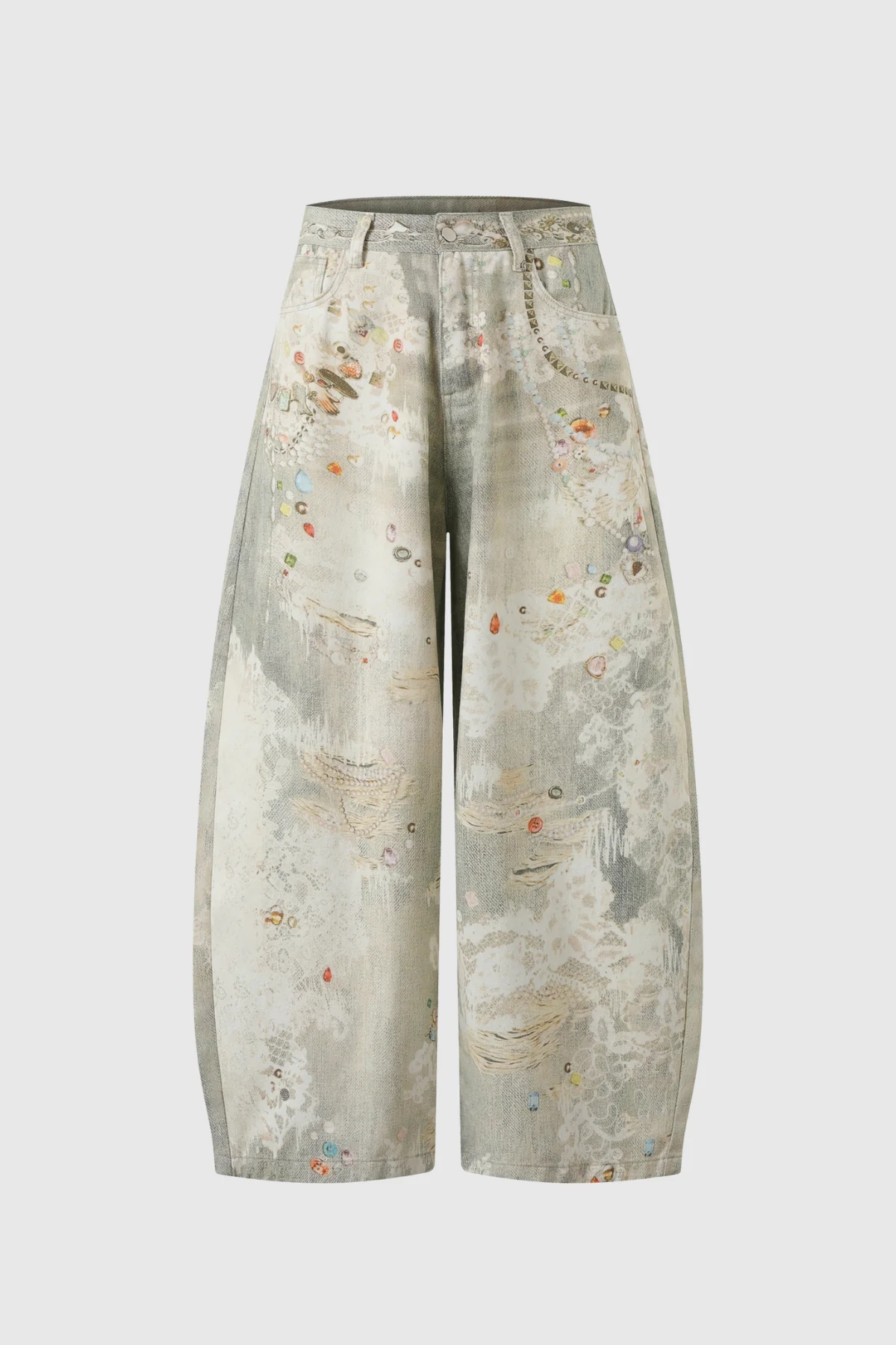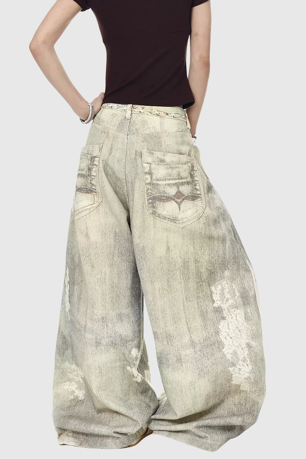 Step up your fashion game with these Bleach Dye Wide Leg Jeans . Featuring a unique artistic bleach-dye pattern, these jeans offer a contemporary look with a wide-leg silhouette for comfort and style. The relaxed fit ensures easy movement, while the distinctive print guarantees youll effortlessly stand out. Crafted for durability, style, and versatility, these jeans are a must-have addition to your wardrobe. Please note that color may vary slightly due to lighting. Stay on-trend with these fashion-forward jeans. Stretch Factor: Non-Stretch Denim. Care Instructions: Gentle machine wash.