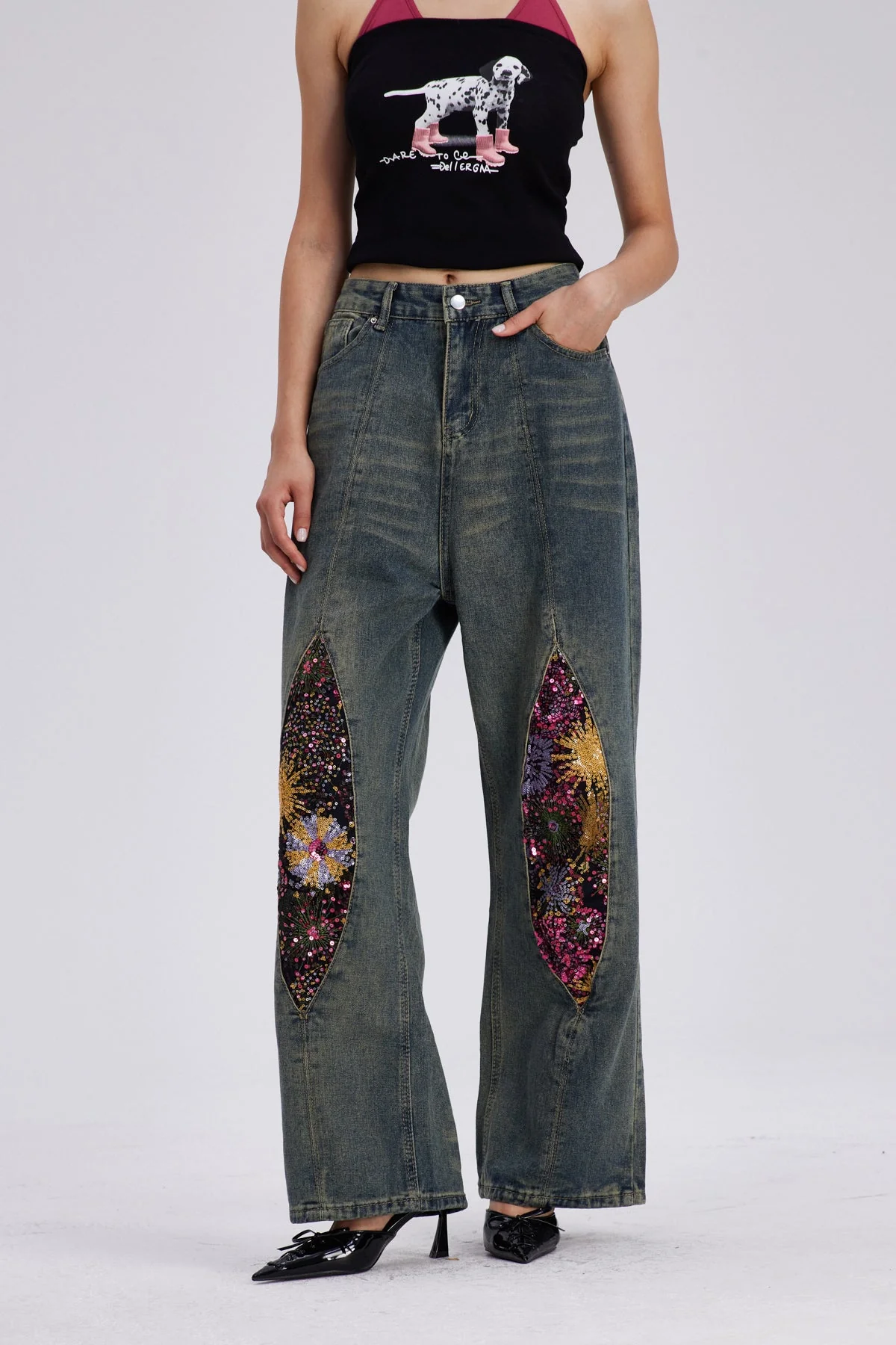 Elevate your style with our Bleached Embroidered Straight Denim Jeans, combining classic tailoring with intricate embroidery. The bleached wash adds texture and a lived-in look. Crafted for durability and comfort, these jeans offer versatile style with expert craftsmanship. This non-stretch denim is ideal for a gentle machine wash ensuring longevity. Discover urban edge with these chic jeans that may vary in color due to image lighting.
