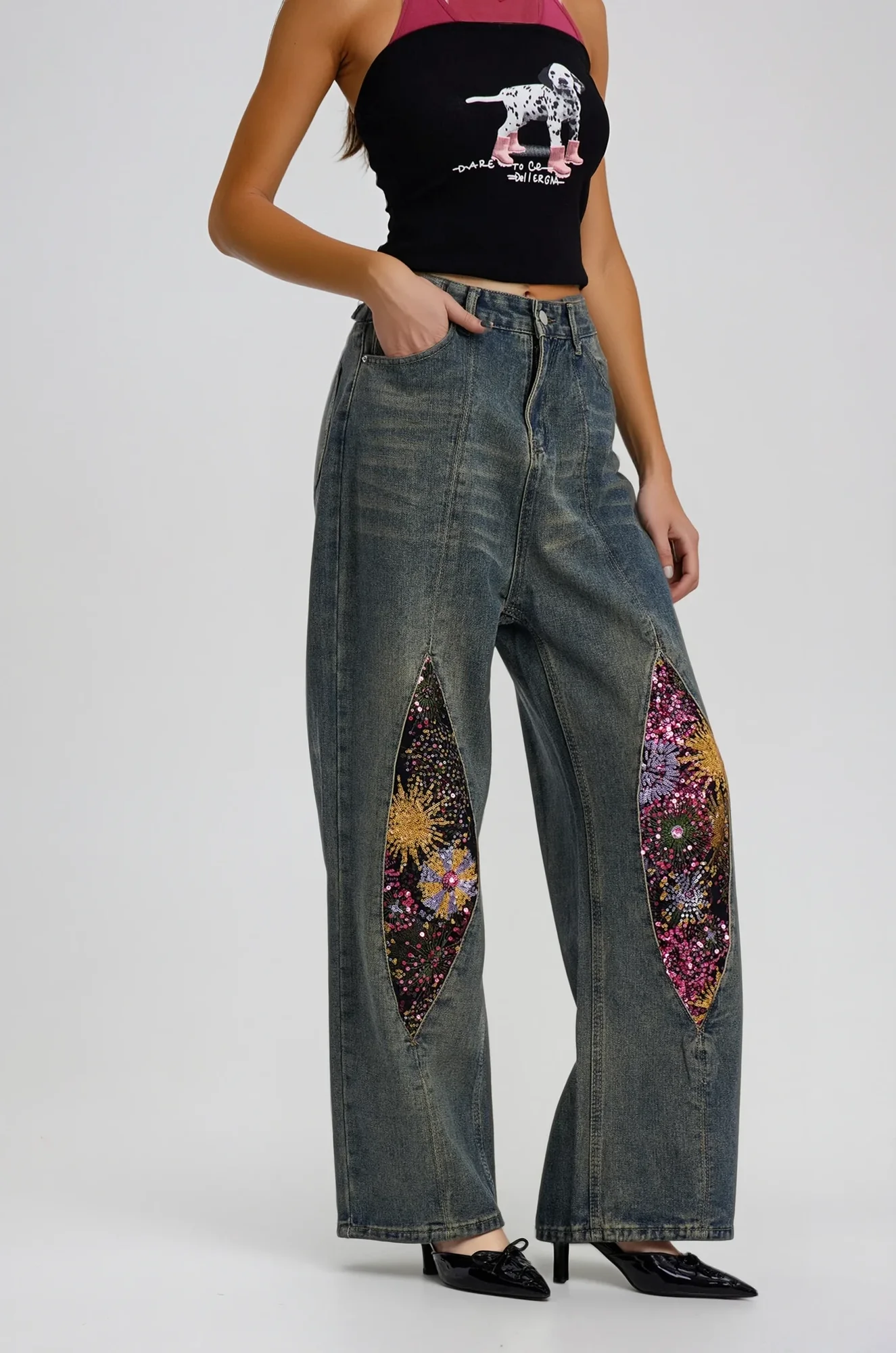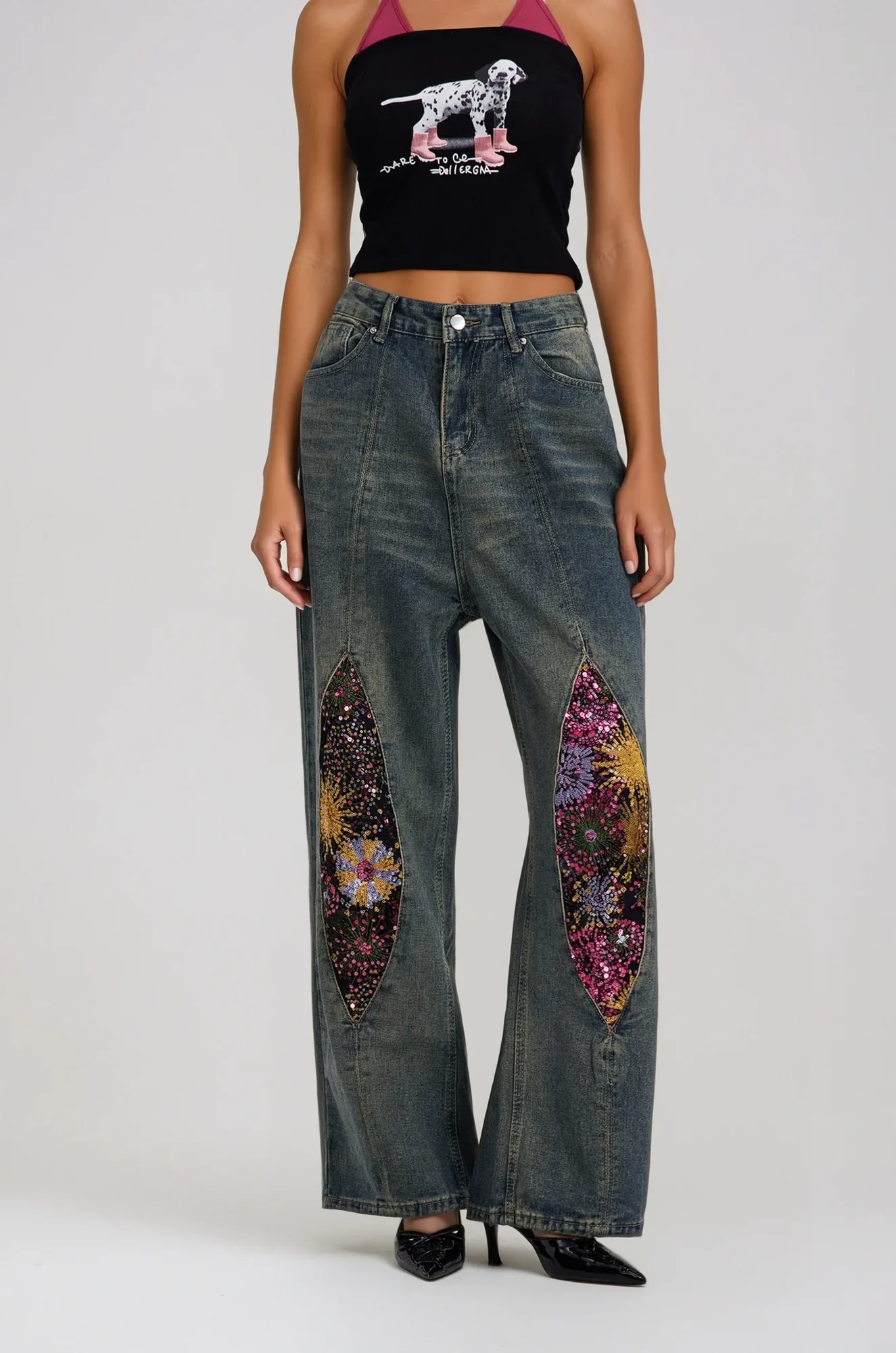 Upgrade your wardrobe with the Bleached Embroidered Straight Jeans . These jeans seamlessly blend classic straight-leg design with intricate embroidery, exuding a refined and contemporary aesthetic. The bleached wash adds texture and a unique lived-in look. Crafted for durability and comfort, these non-stretch jeans are ideal for those who appreciate stylish versatility combined with expert craftsmanship. Make a statement with urban edge style. Color variations may occur due to lighting differences in images.