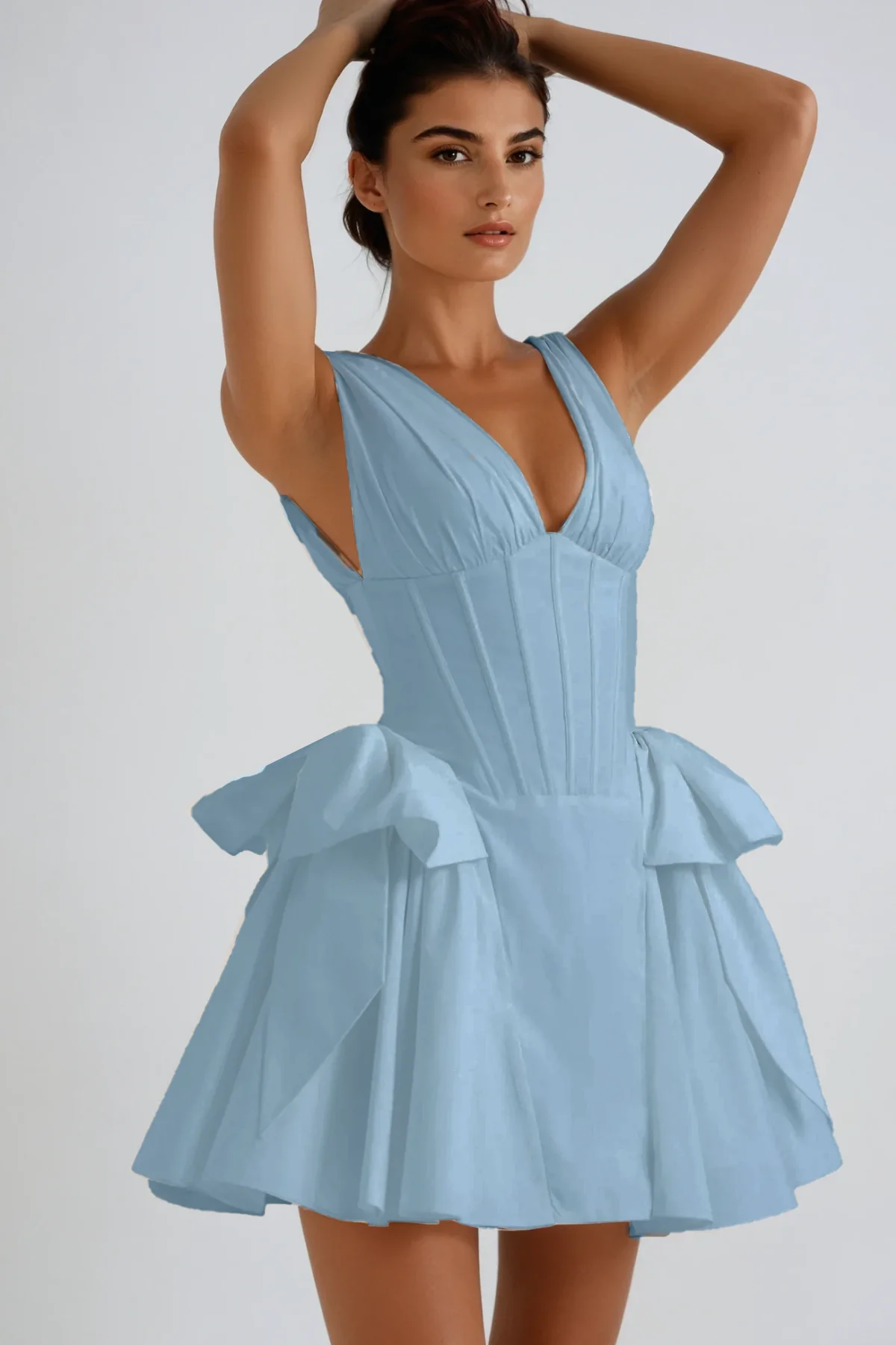 Elevate your wardrobe with the Bluma Corset Bow Puffy Dress in Blue, masterfully crafted to blend structure and softness. This stunning attire showcases a tailored corset bodice that accentuates your figure and a voluminous puffy skirt for a captivatingly grandiose yet refined appearance. The timeless blue shade exudes sophistication, ideal for upscale events where elegance is paramount. Offering a flattering fit and commanding presence, the versatile Bluma dress caters to trendsetting individuals craving a blend of style and quality craftsmanship. With a non-stretch finish and easy-care properties, this dress blends comfort with luxury. *Stretch Factor: Non-Stretch* *Care: Gentle machine wash* *Color may vary due to lighting conditions.*