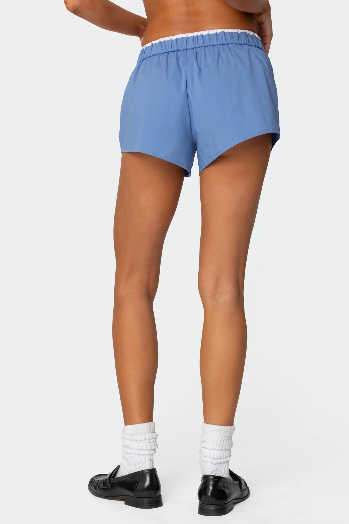 Experience comfort and style with our Blue Cotton Boxer Shorts Set, featuring low-rise design, elastic waistband, button detailing, and a matching set for a complete look. Made of 100% Cotton for a soft feel. Machine washable for easy care. Available in sizes XS to XL. Model wears size S. Inseam of size S: 2.8 inches. Model height is 59. Make a fashionable statement with this trendy set perfect for casual wear.
