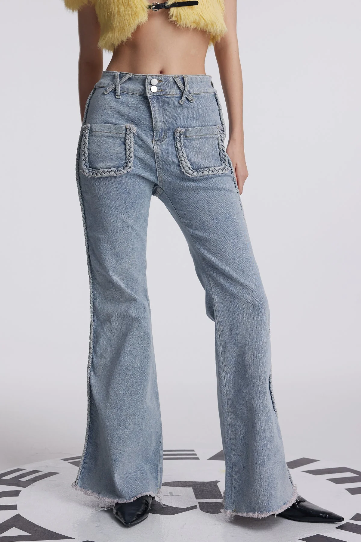 Discover the trendy Blue Cross Pocket Fringe Jeans . These jeans feature a unique cross pocket design for secure storage and stylish fringe detailing for a fashionable edge. Made from high-quality 50% Polyester and 50% Cotton materials, these non-stretch jeans are a must-have addition to any fashion-forward wardrobe. The gentle machine wash ensures easy care. Please note, color may vary due to lighting in images.