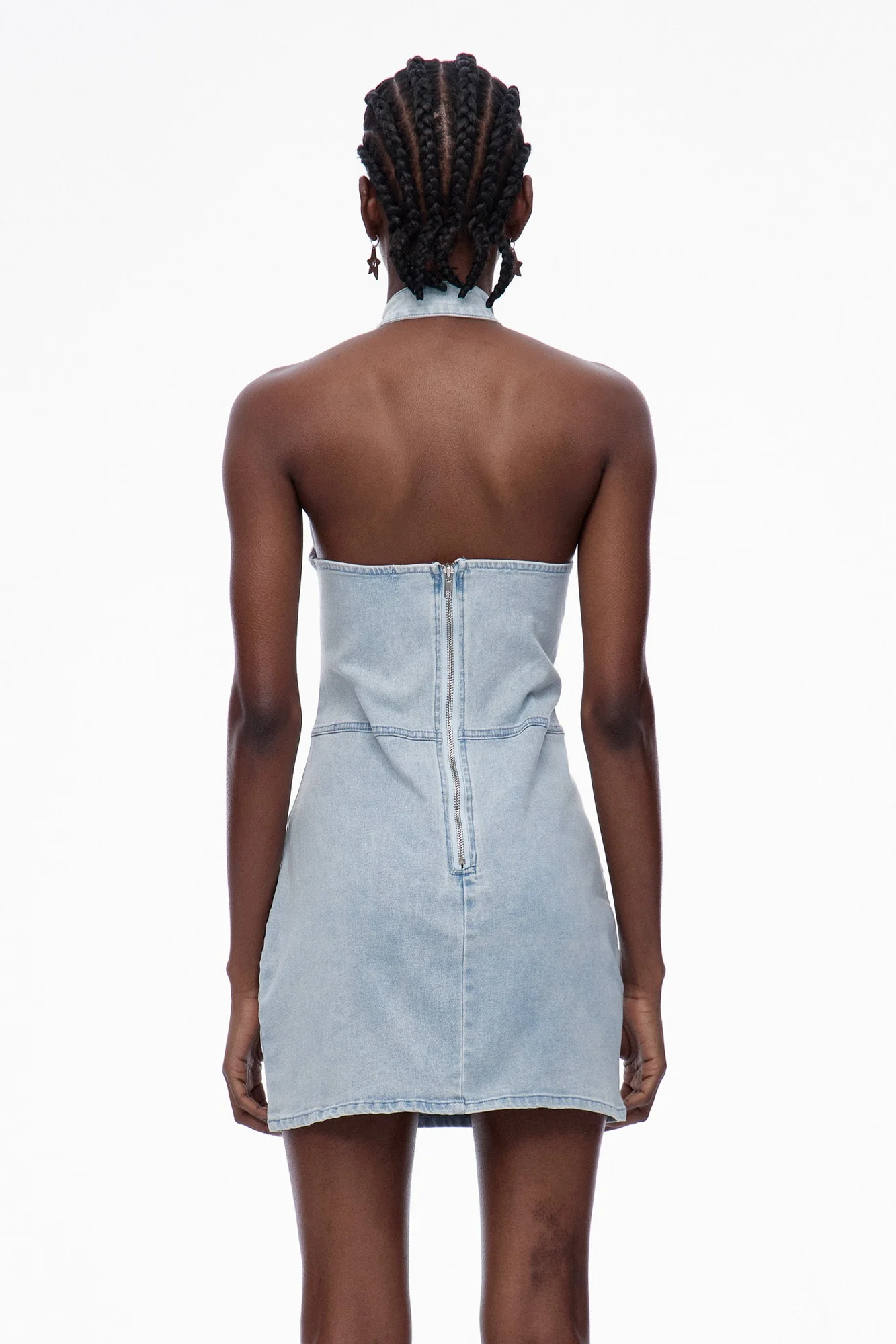The Blue Denim Cutout Mini Dress blends modern style with expert craftsmanship. Made from high-quality denim, this mini dress features strategic cutouts that offer a contemporary touch while ensuring comfort and structure. Its flattering design accentuates your silhouette, making it a versatile option for any occasion, whether casual or chic. This durable yet breathable dress guarantees long-lasting wear with a touch of urban edge. The non-stretch fabric calls for gentle machine washing; please note that colors may slightly vary due to differing lighting in images.