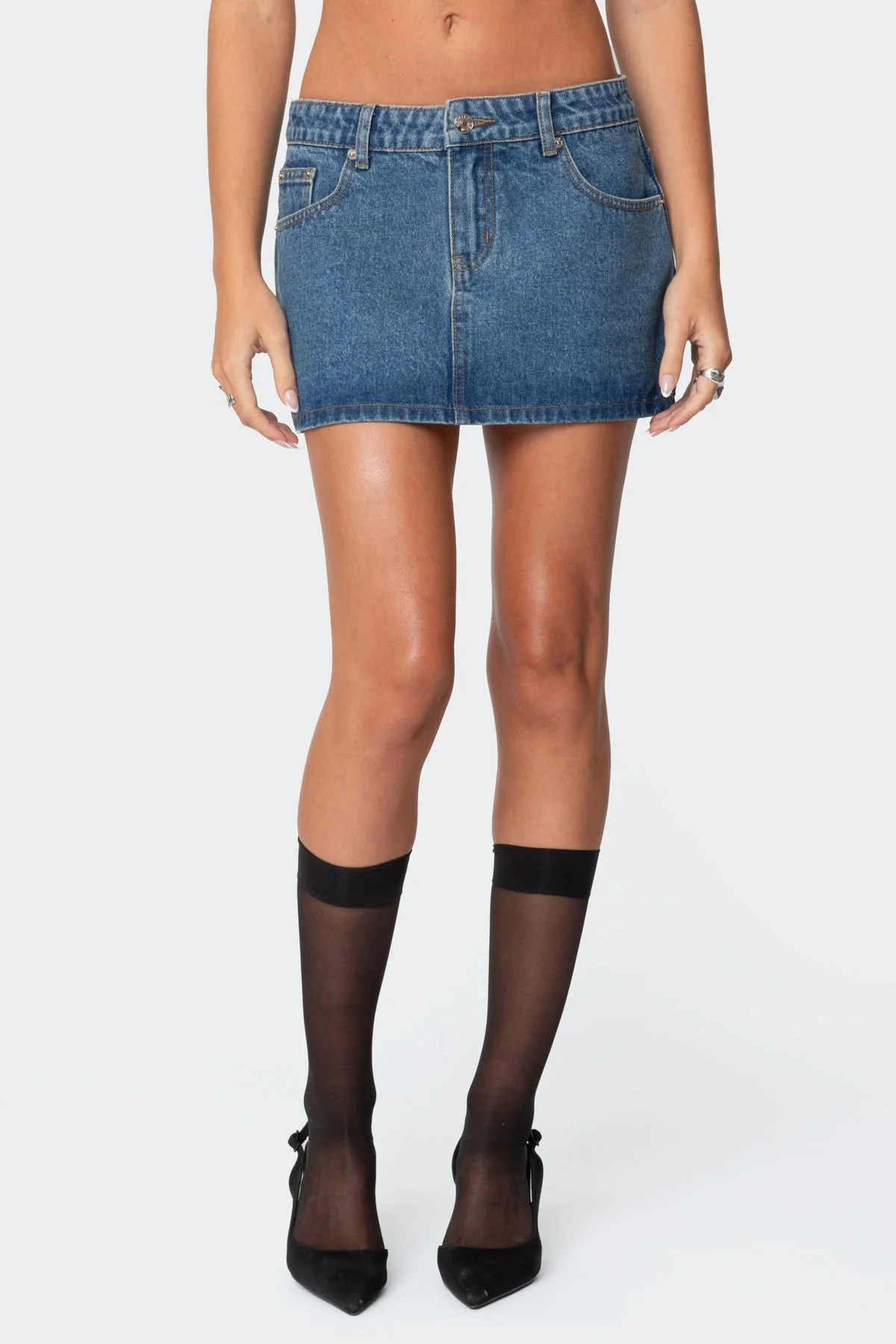 Discover the quintessential denim staple with our Blue Denim Mini Skirt. Crafted from 100% cotton, this skirt features front & back pockets, a low-rise waist, and a front zip & button closure for a stylish yet casual look. Perfect for versatile styling options, this skirt is a must-have in your wardrobe. Machine washable for easy care. Available sizes: XS, S, M, L, XL.