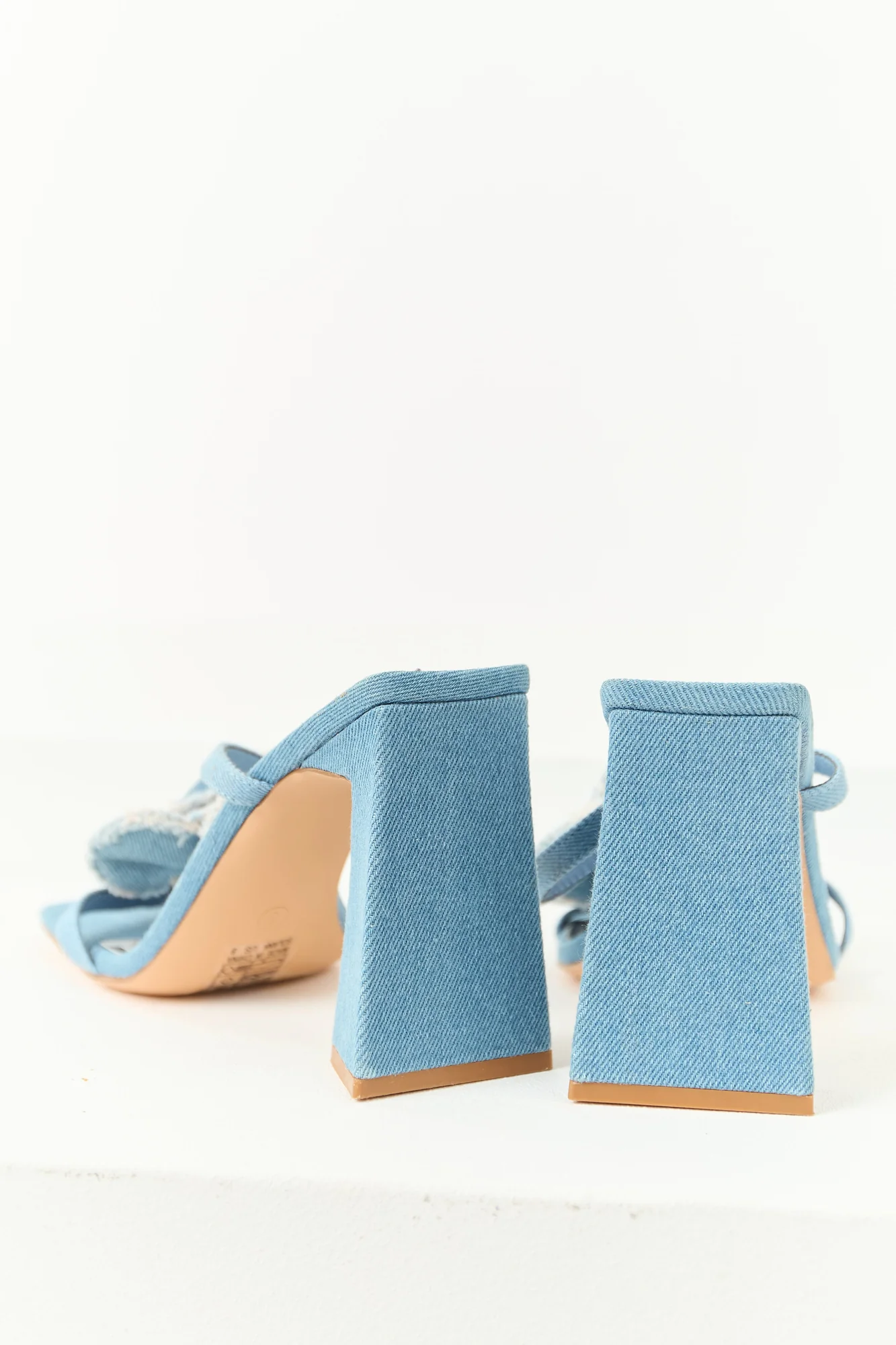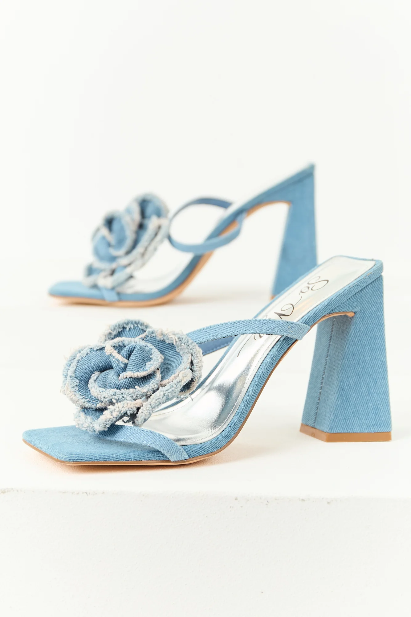 Step out in style with these Blue Denim Square Toe Flower Block Heel Shoes. Featuring a lightly cushioned insole, open square toe, and a fashionable frayed denim flower design, these slip-on heels offer both comfort and trendiness. The flare block heel adds height without sacrificing stability. Shaft height measures 2.5 inches, heel height is 4.5 inches, and circumference is 8 inches. Imported and available in multiple sizes.