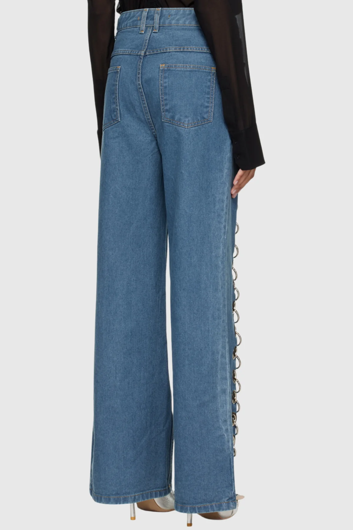 Elevate your wardrobe essentials with these Blue Eyelet Straight Leg Jeans . Crafted from premium denim, these jeans combine classic straight-leg tailoring with delicate eyelet details for a refined yet modern look. The durable material and comfortable fit make them ideal for daily wear. The subtle eyelet accents add a unique texture, showcasing expert craftsmanship and style precision. Step out in timeless design with a contemporary twist. These non-stretch jeans are easy to care for with a gentle machine wash. Please note, color may vary due to lighting in images.