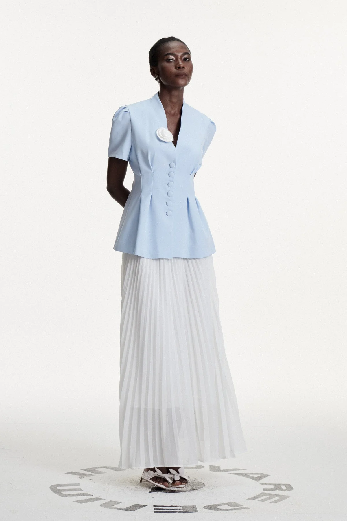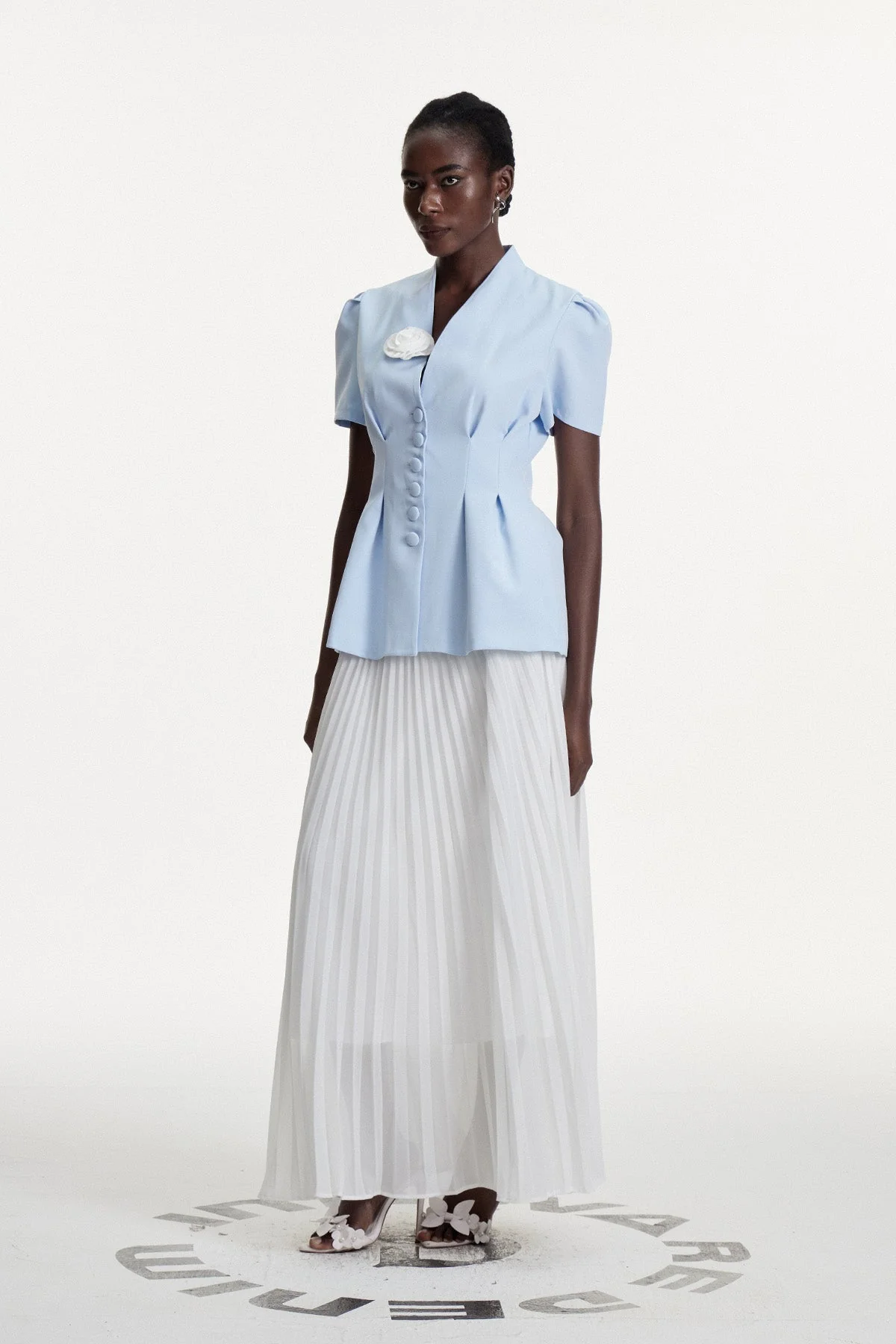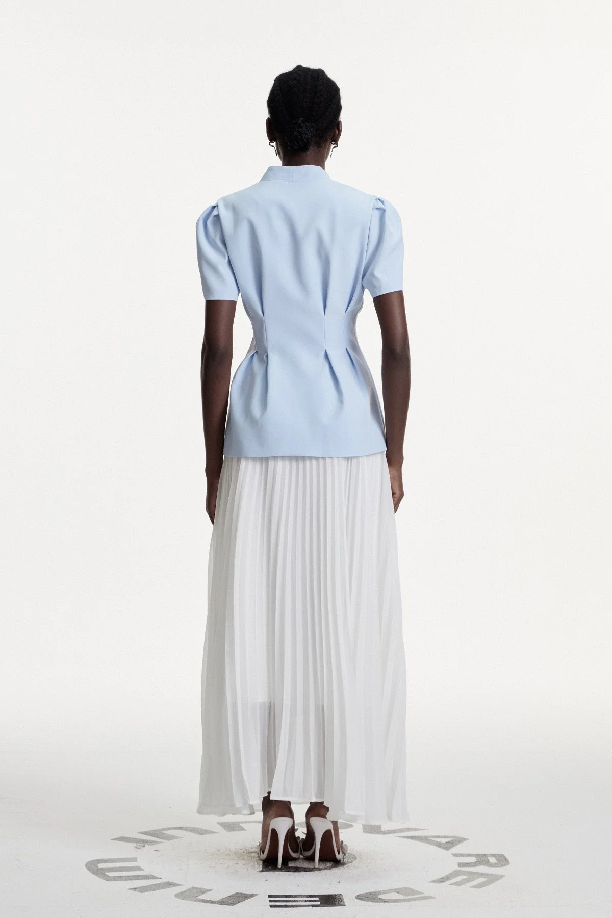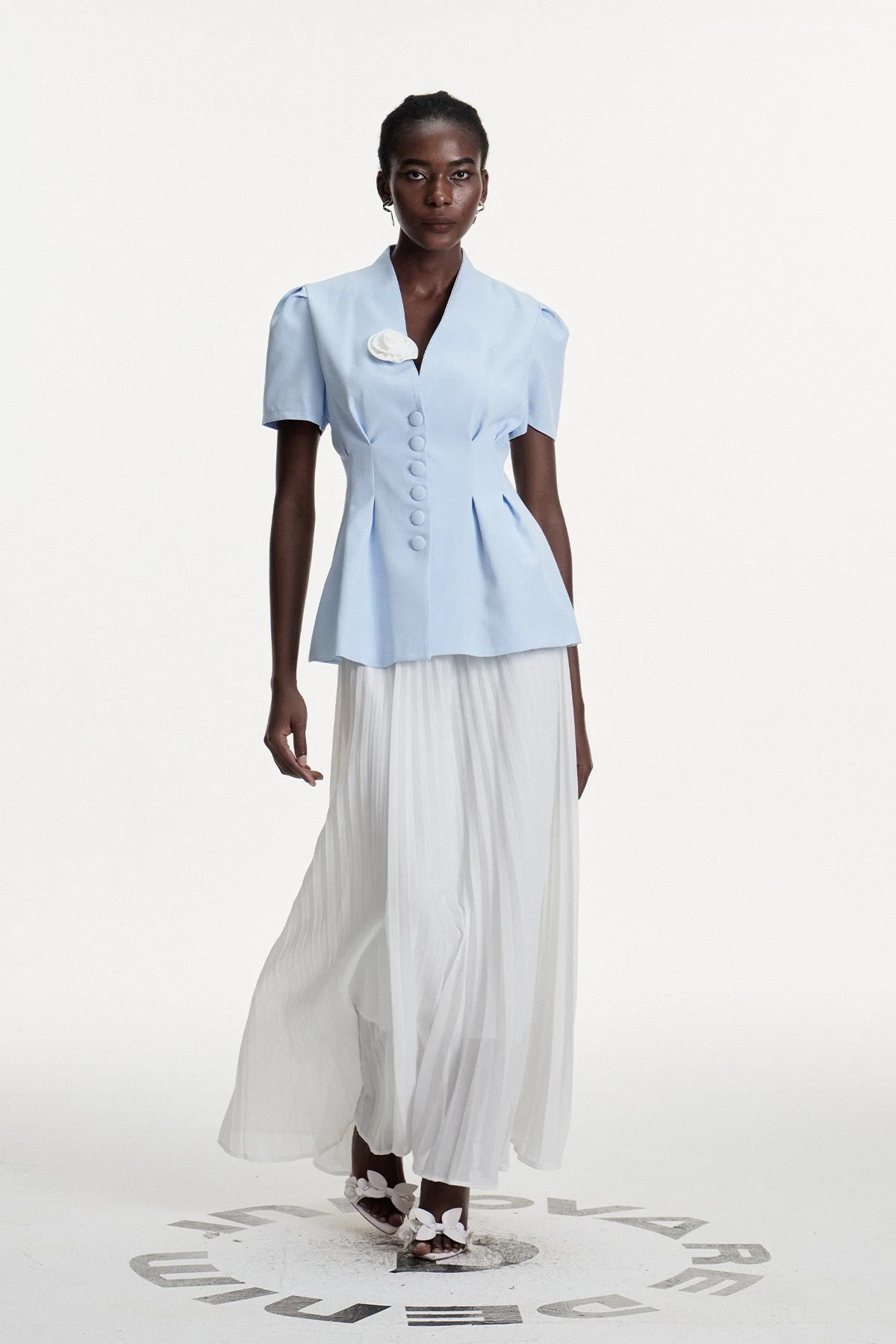 Elevate your wardrobe with the Blue Floral Ruch Top for women. Featuring delicate floral detailing and expert tailoring, this versatile piece offers comfort and style for casual or elegant occasions. The ruched design enhances the fit while adding texture, ensuring understated sophistication in every wear. This chic essential is crafted for a refined silhouette that stands out effortlessly. Color may vary due to lighting. Stretch Factor: Non-Stretch. Clean with a gentle machine wash.