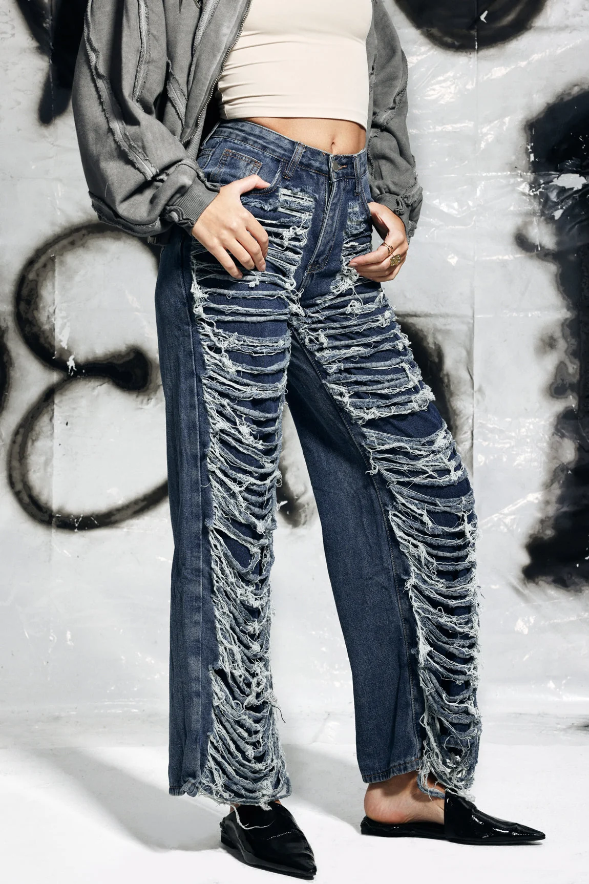 Discover comfort and style with our Campbell Torn Fringe Jeans in Blue. Expertly crafted from durable 100% polyester, these jeans feature torn fringe detailing for a touch of edginess. Perfect for denim lovers, these versatile jeans are machine washable for easy care. Add a trendy flair to your wardrobe with these fashionable jeans that are sure to impress. Please note: color may vary due to lighting effects in images. Upgrade now!