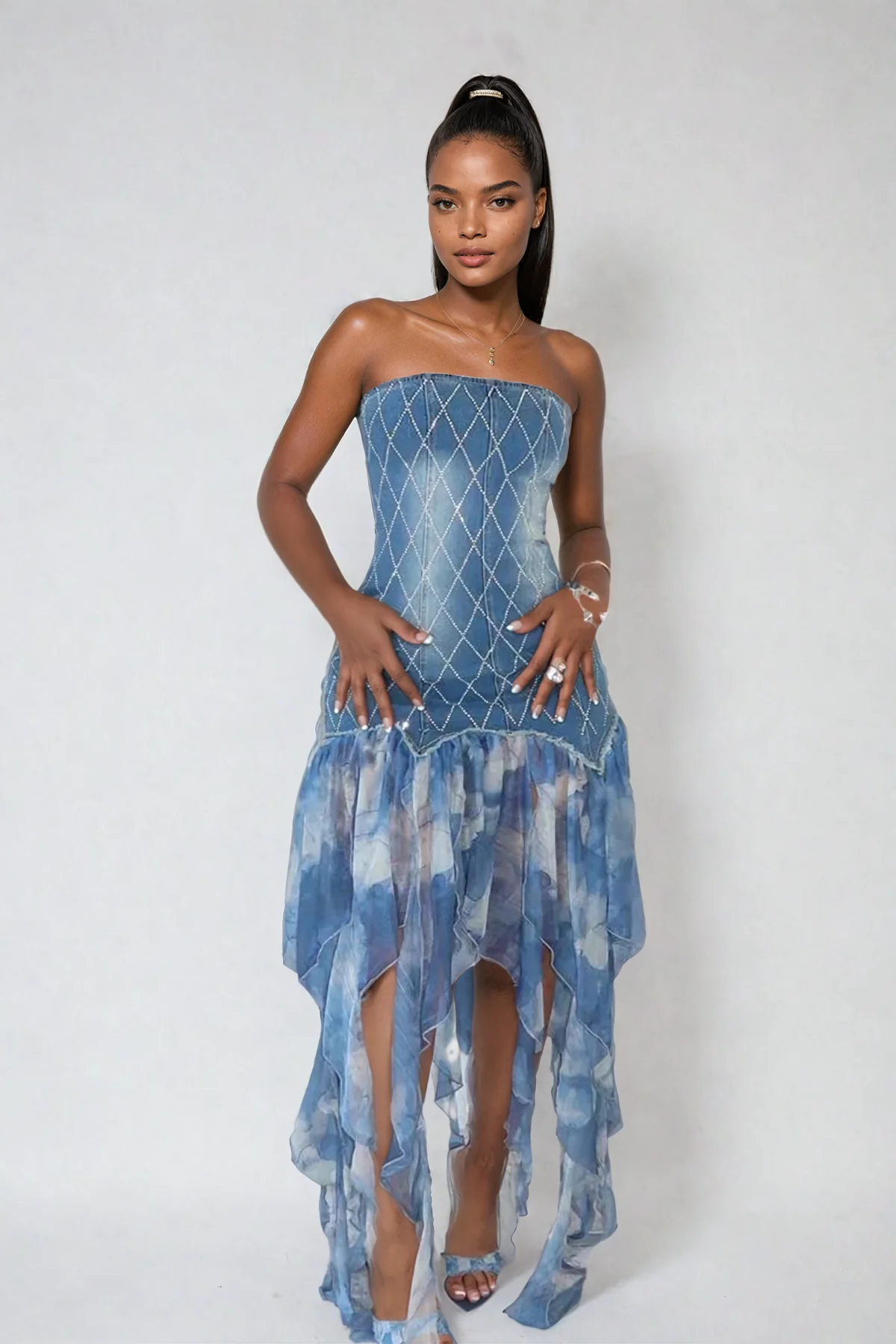Elevate your wardrobe with the chic and versatile Blue Fringe Maxi Dress. This must-have piece features a stunning print with fringe details, adding a touch of elegance to any occasion. The strapless design enhances its grace, while the maxi length ensures a flattering silhouette. Made from 100% polyester, this dress is easy to maintain with gentle machine wash. Color variations may occur due to lighting. Own your style with this statement piece that exudes sophistication and charm.
