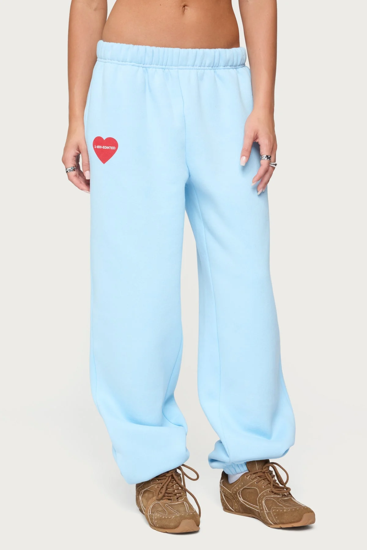 Stay trendy and comfortable in our Blue Graphic Text Heart Print Sweatpants Set made of Polyester and Cotton blend. The elastic waistband ensures a perfect fit while the matching set gives you a stylish look. This set includes sweatpants with a heart graphic print. Model wears size S with an inseam of 31.1 inches. For care, machine wash at maximum 30°C and iron at a maximum of 110°C. Grab yours now!
