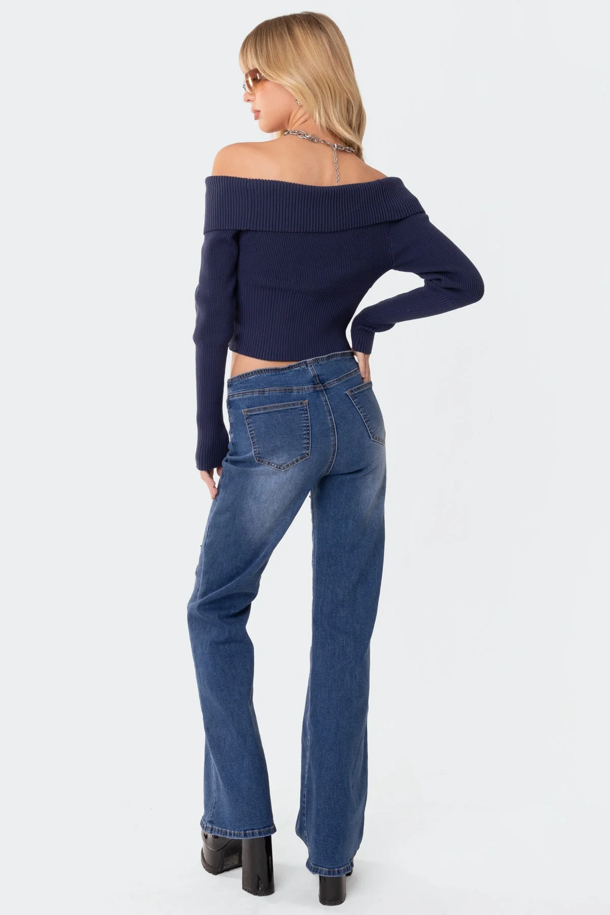 Experience the ultimate comfort in our blue knit sweater. This long-sleeved top features a stylish fold-over neckline and double zip detail, all crafted from high-quality 100% cotton fabric. Stay cozy and stylish all day long with this must-have piece. Available in XS/S, M/L, and XL sizes. Care instructions: Machine wash with similar colors for best results.
