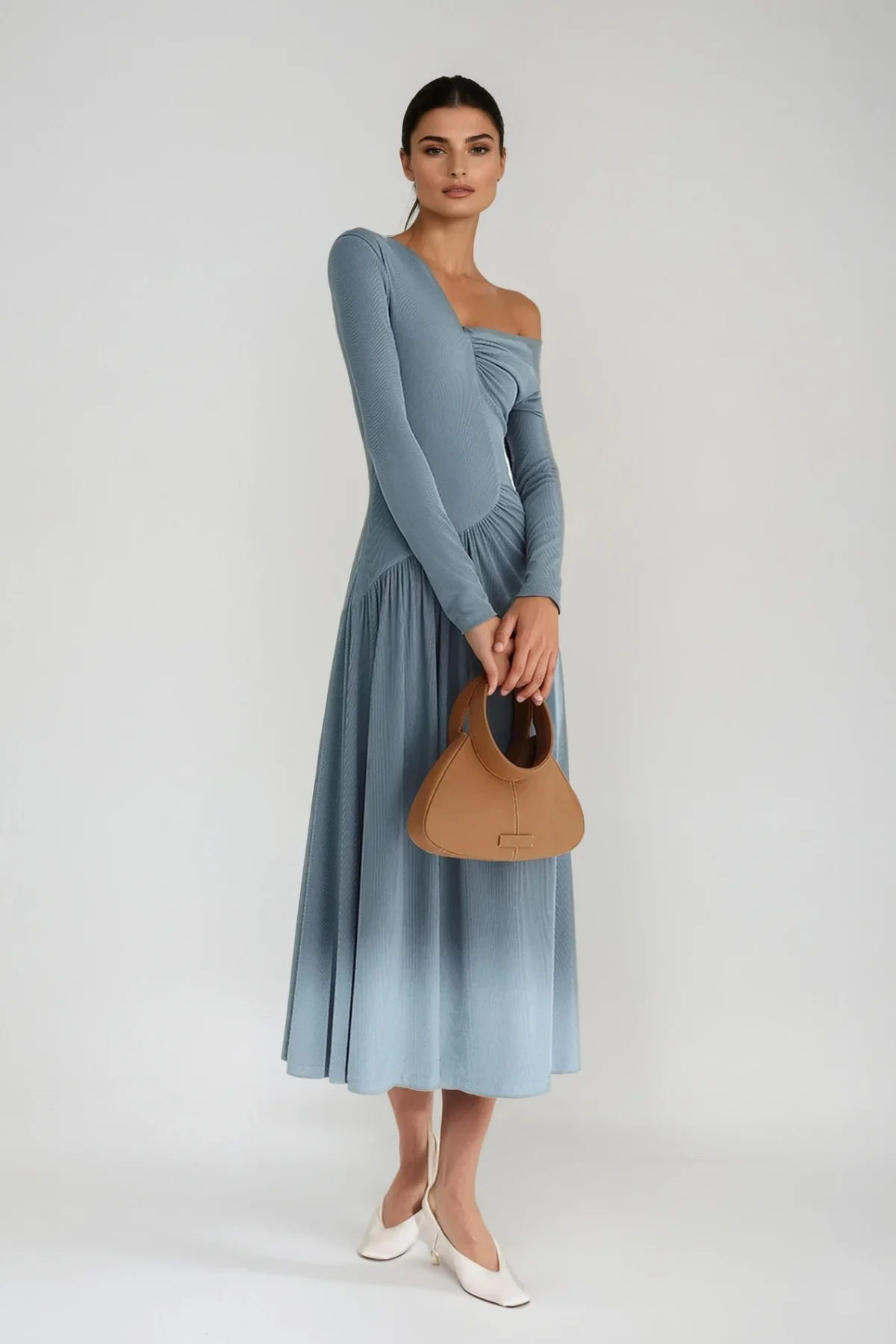 Elevate your evening with the Blue One Shoulder Ruched Maxi Dress. This elegant dress features expertly tailored ruching that sculpts your silhouette, an asymmetric neckline, and a flowing maxi length for a striking, modern look. The rich blue hue adds depth and sophistication, perfect for formal events or special occasions. With a design that balances bold style with elegant comfort, this dress ensures you stand out with confidence and style. Crafted with slight stretch and easy care, its perfect for your next memorable occasion. Color may vary due to lighting. Explore how you can wear this dress uniquely by pairing it with different accessories.