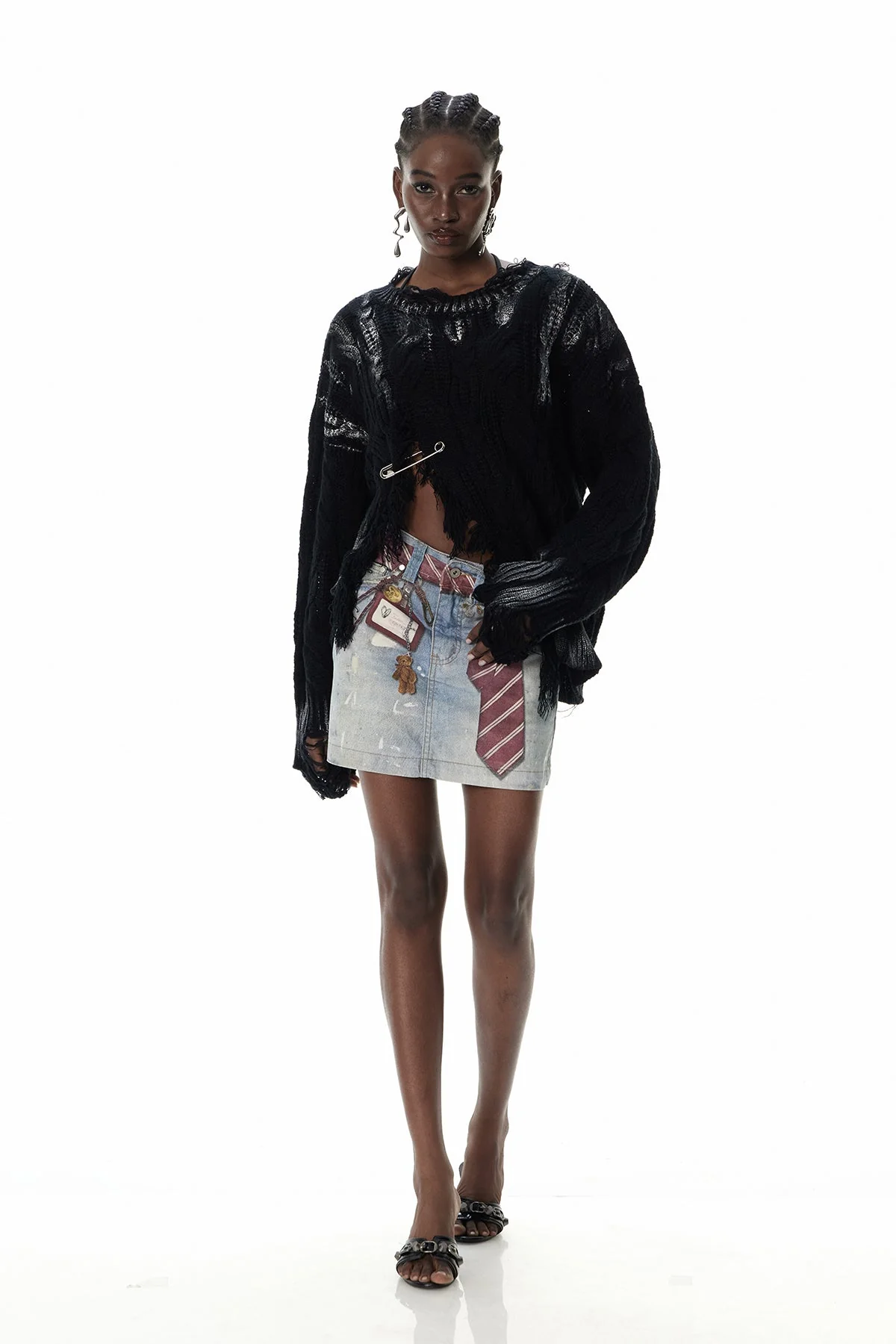 The Blue Printed Denim Mini Skirt offers a blend of timeless denim durability and a unique printed design, elevating casual wear with a contemporary touch. This mini skirt is carefully crafted for a flattering length, versatile for various top pairings. It combines distinct style with comfort, emerging as a key piece in modern wardrobes embracing edgy yet wearable fashion. The skirt does not stretch and can be gently machine washed. Please note that color variations may occur due to lighting in images.
