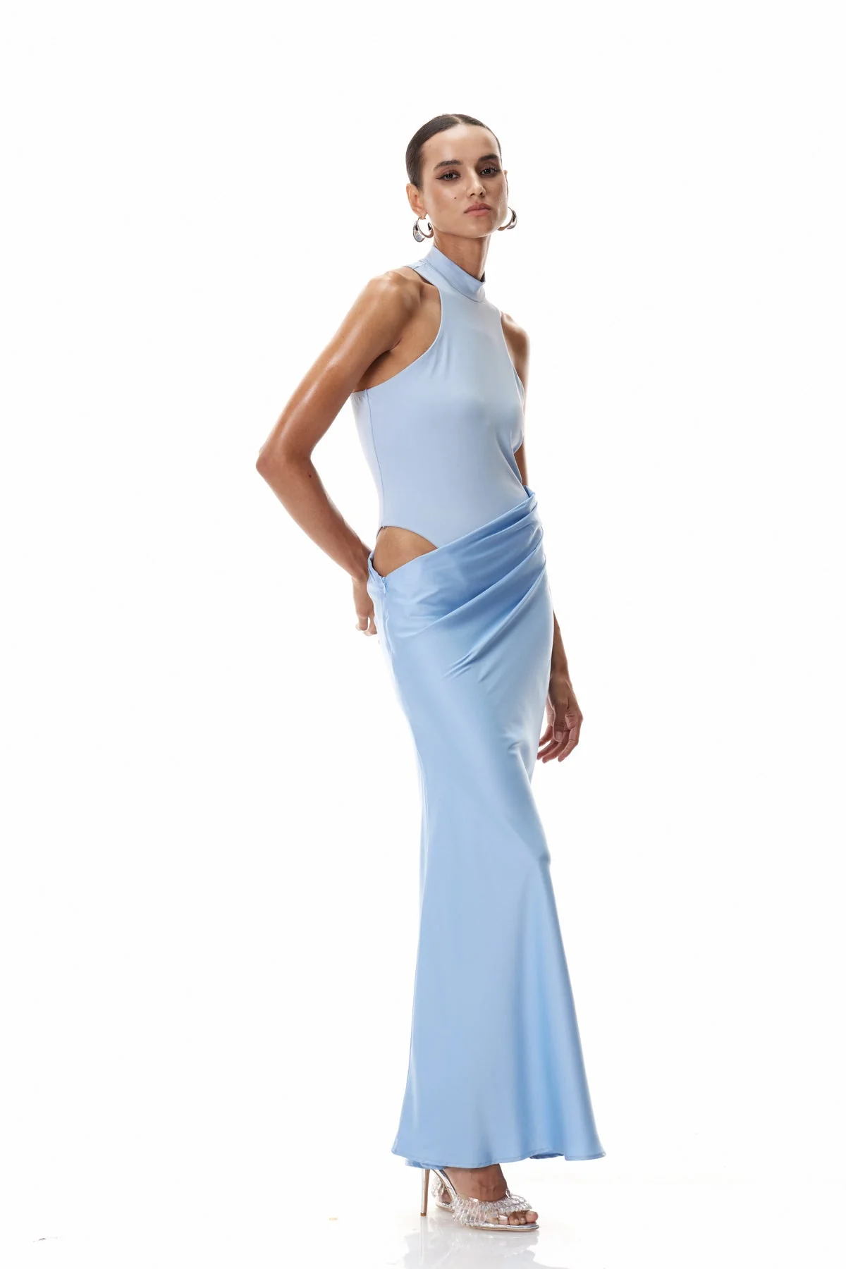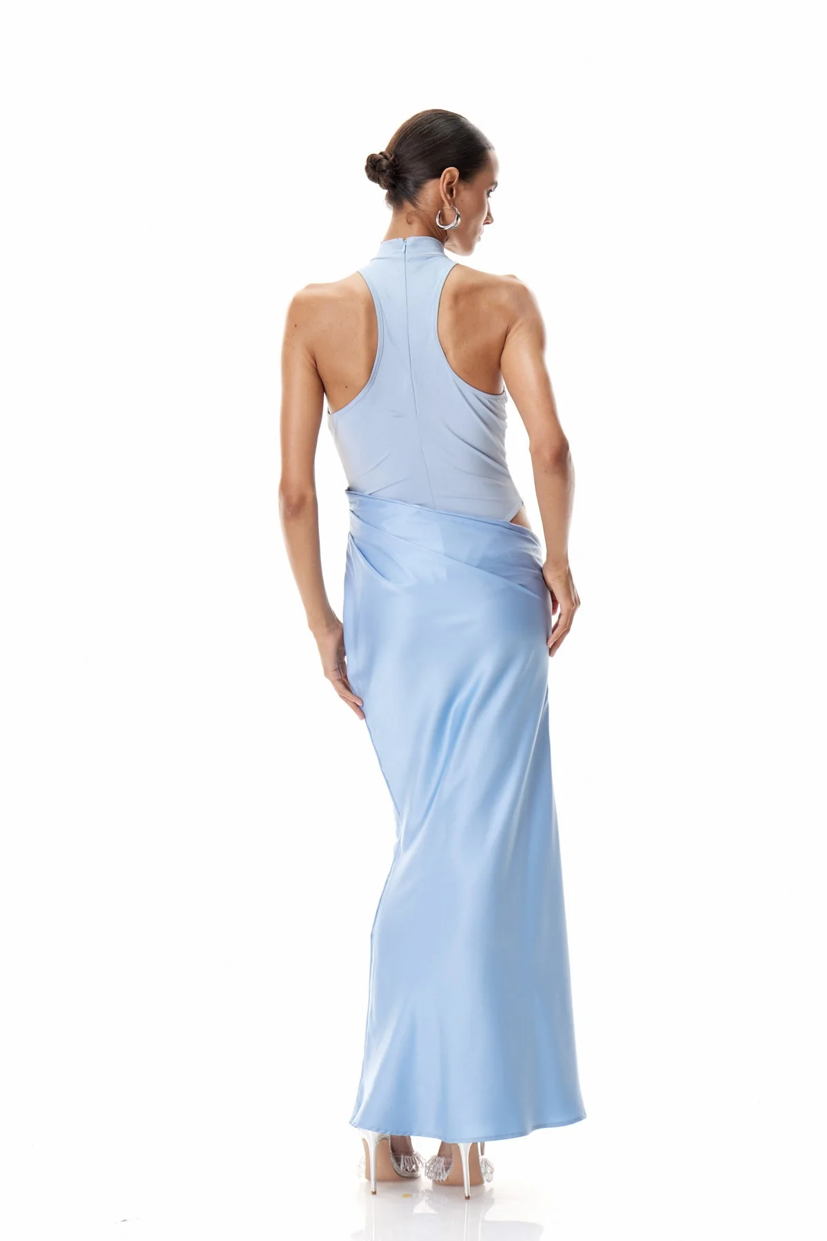 Elevate your wardrobe with the Blue Satin Tank Top Maxi Dress. Crafted from smooth satin, this elegant dress drapes beautifully for a refined look suitable for formal occasions and stylish outings. The modern tank top design in rich blue adds sophistication to your collection. This versatile dress features a slight stretch and is easy to clean with a gentle machine wash. Color may vary slightly due to lighting effects. Explore sizes in small, medium, and large.