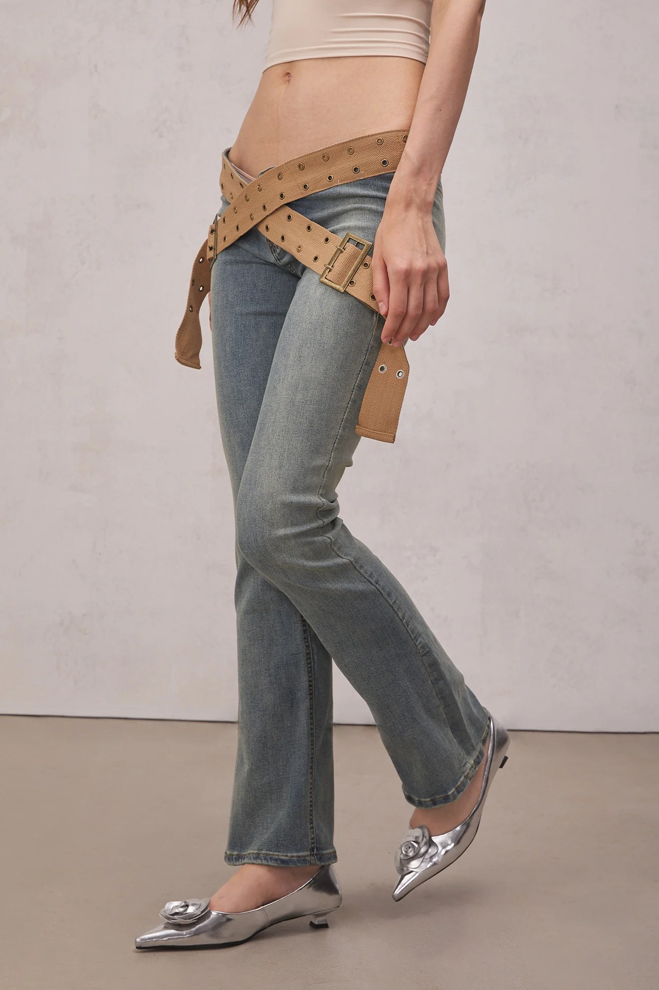 Discover the modern and edgy twist of our Blue Strap Up Denim Jeans. Crafted from high-quality denim, these jeans offer both comfort and style for a bold wardrobe statement. Made of 100% Polyester with no stretch factor. Care: Gentle machine wash. Please note, color may vary due to image lighting. Our product images display the true color. Embrace the unique strap up design and elevate your outfit today!