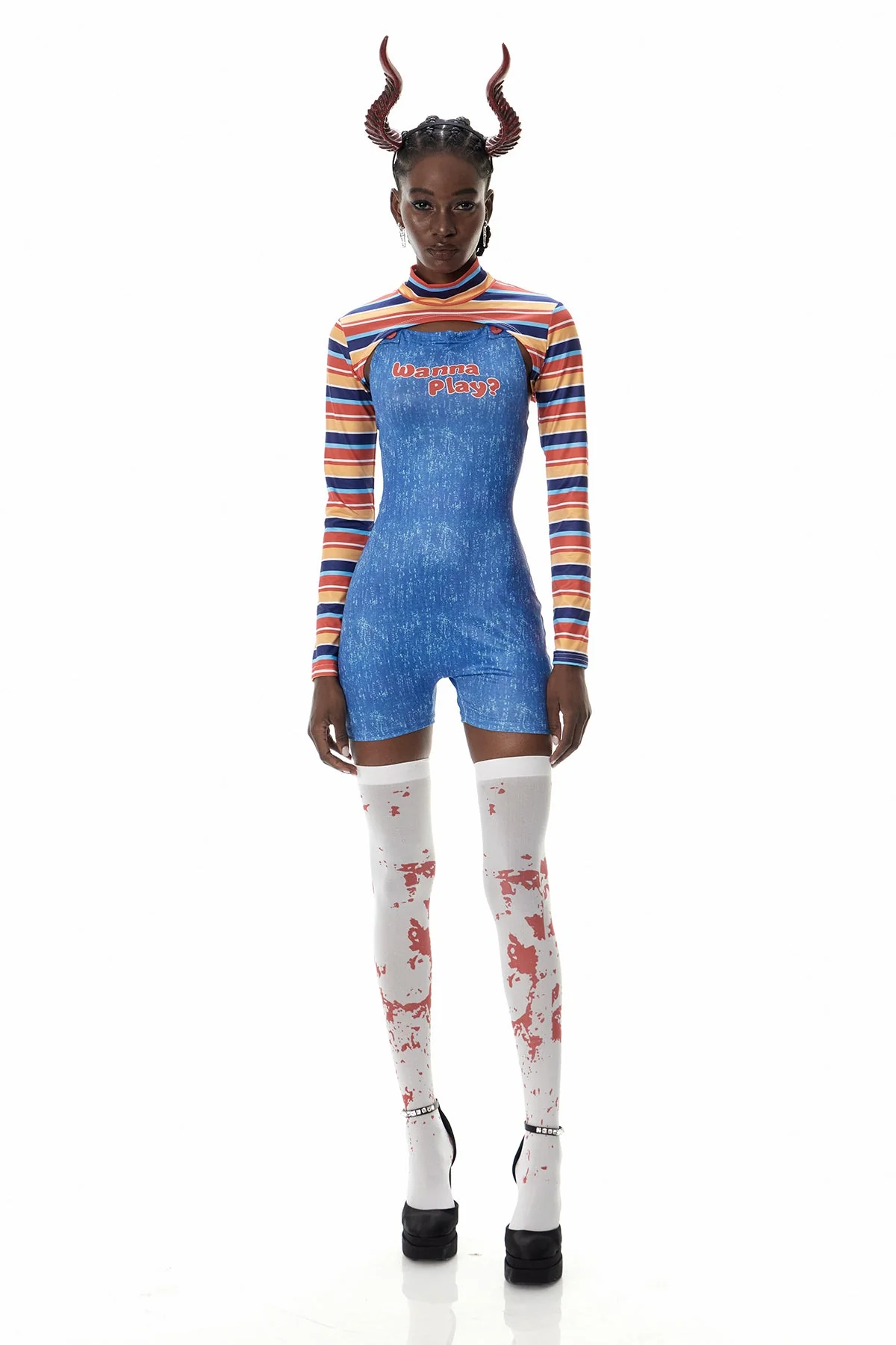 Indulge in the elegant charm of the Blue Striped Bodycon Jumpsuit . This versatile piece offers a sleek, contoured fit for a refined silhouette. With a slight stretch for comfort and a modern stripe pattern, this jumpsuit effortlessly transitions from casual outings to evening events. Crafted for style and ease, its a must-have in your wardrobe. Embrace sophistication with this jumpsuit. This jumpsuit is machine washable. Please note: Headband not included.