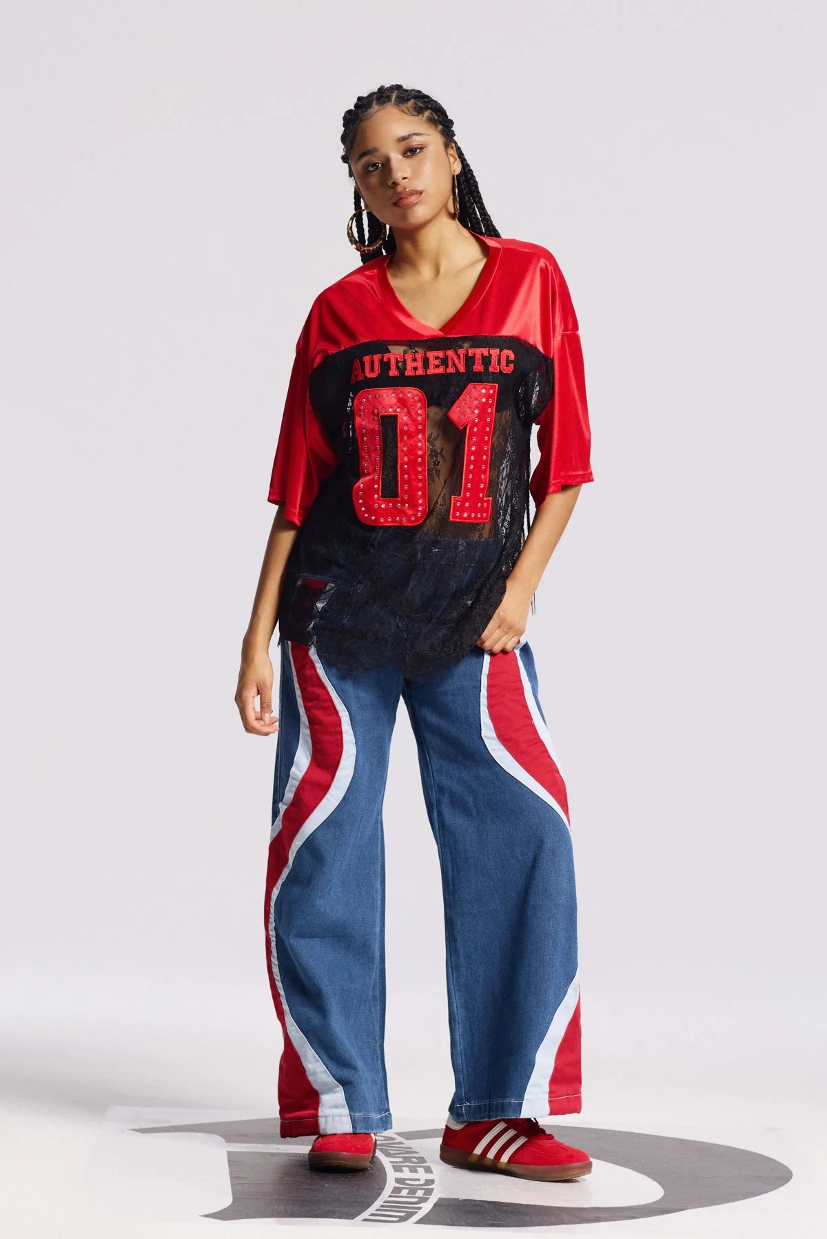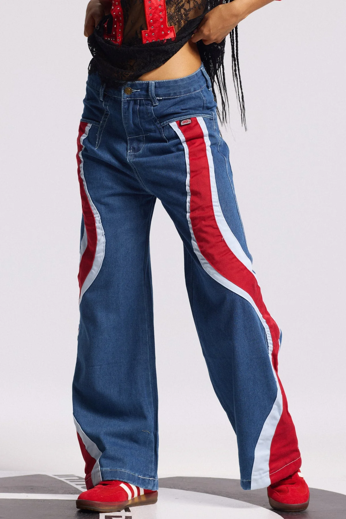 Elevate your style with our Blue Striped Wide Leg Jeans . Crafted in premium denim with a non-stretch construction, these jeans offer a contemporary silhouette and an on-trend wide leg cut for enhanced movement and structure. The strategic stripe pattern creates a lengthening effect, perfect for versatile styling options from casual to elevated looks. Enjoy easy care with a gentle machine wash. Please note, color may vary due to lighting. Discover the perfect balance of comfort and fashion with these stylish jeans.