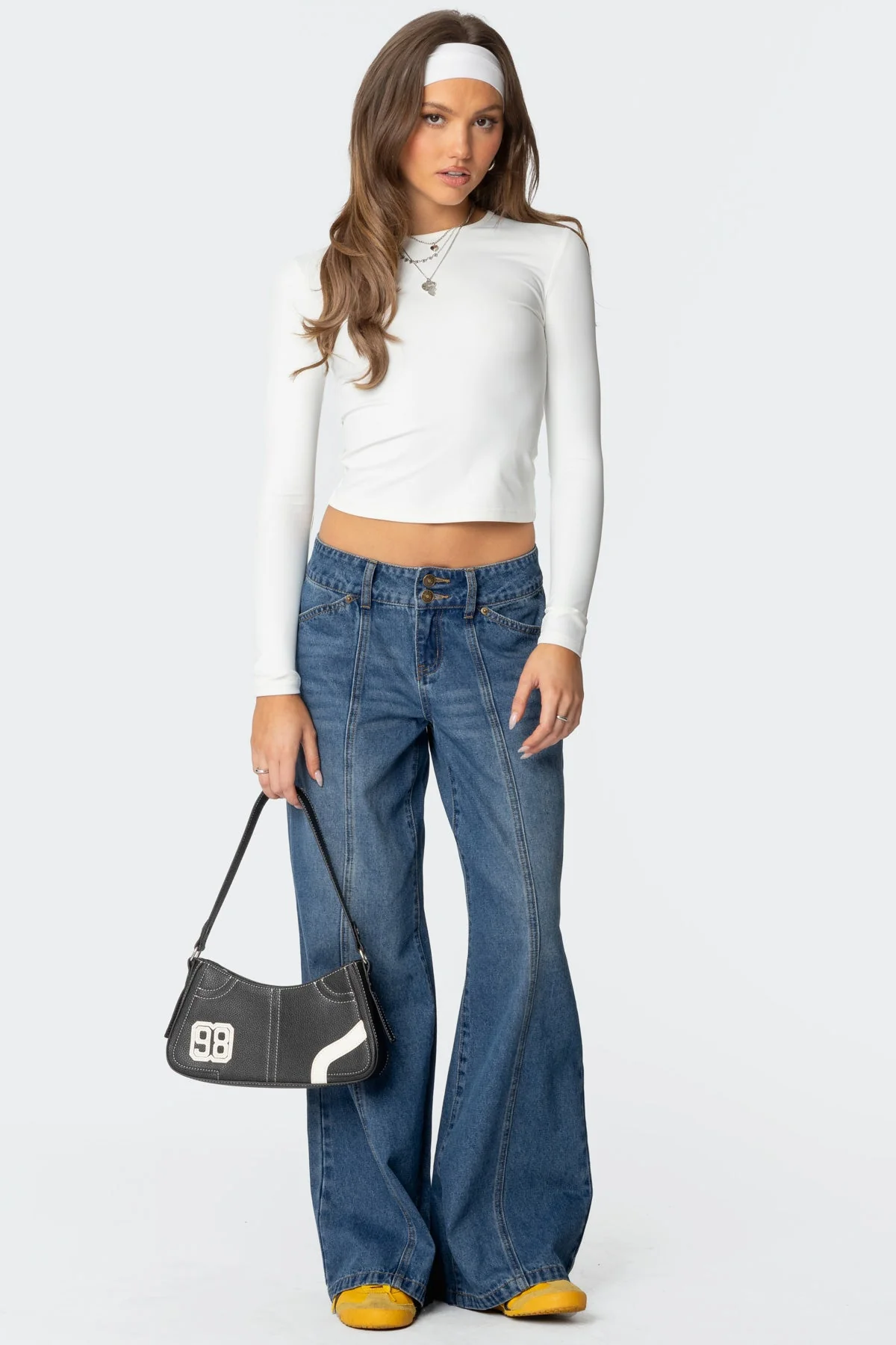 Step up your style game with these Blue Washed Low Rise Denim Pants. Featuring a trendy wide leg fit with stylish panel stitching and double button detailing for a chic look. Made from comfortable denim fabric crafted with cotton for a perfect fit. Easy to care for with machine wash cold, avoiding bleach, tumble dry low, and ironing at a moderate temperature.