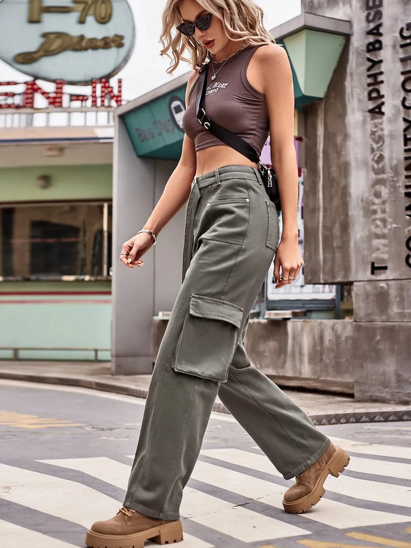 Upgrade your wardrobe with these stylish Brown Cargo Wide Leg Pants . Crafted from a comfortable 85% cotton and 15% polyester blend, these pants feature contrast stitching, spacious pockets, and a slightly stretchy design for all-day wear. Machine wash cold and tumble dry low for easy care. Available in sizes S to 2XL, these pants offer a waist range of 25.2 inches to 40.2 inches and hip measurements up to 50.4 inches. Elevate your casual chic look with these versatile cargo pants.