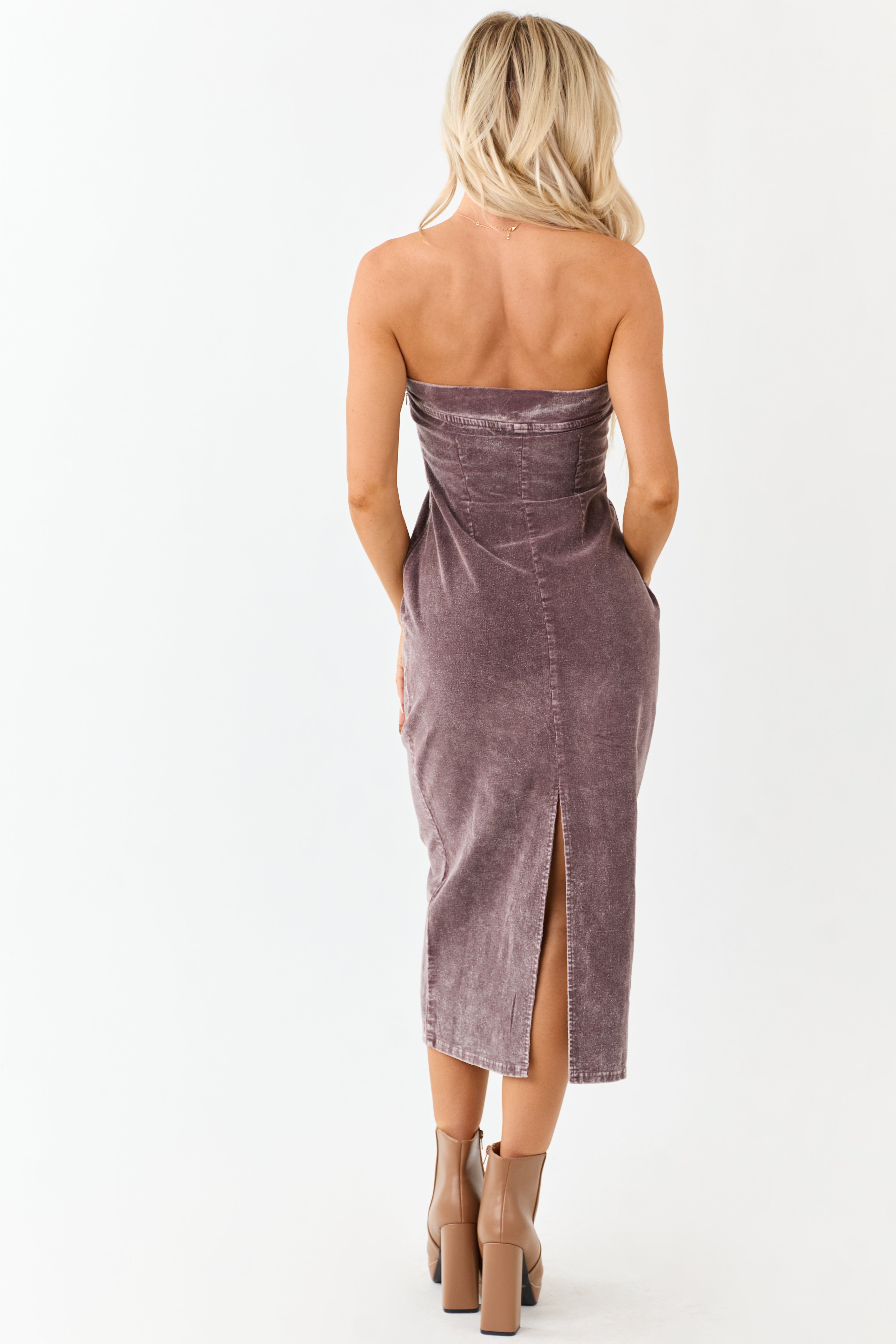 Experience elegance and comfort with our brown corduroy bodycon midi dress. Crafted with a blend of 97% cotton and 3% spandex, this strapless dress is perfect for various occasions. The stretchy fabric ensures a snug fit, while the hidden side zipper and back slit add to its charm. Whether its cocktails, dinners, or night outs, this dress will have you looking chic effortlessly. Size chart: XS: Bust 31, Waist 23, SM: Bust 33, Waist 25, M: Bust 35, Waist 27, L: Bust 37, Waist 29, XL: Bust 39, Waist 31. Length: 41. Belt not included.