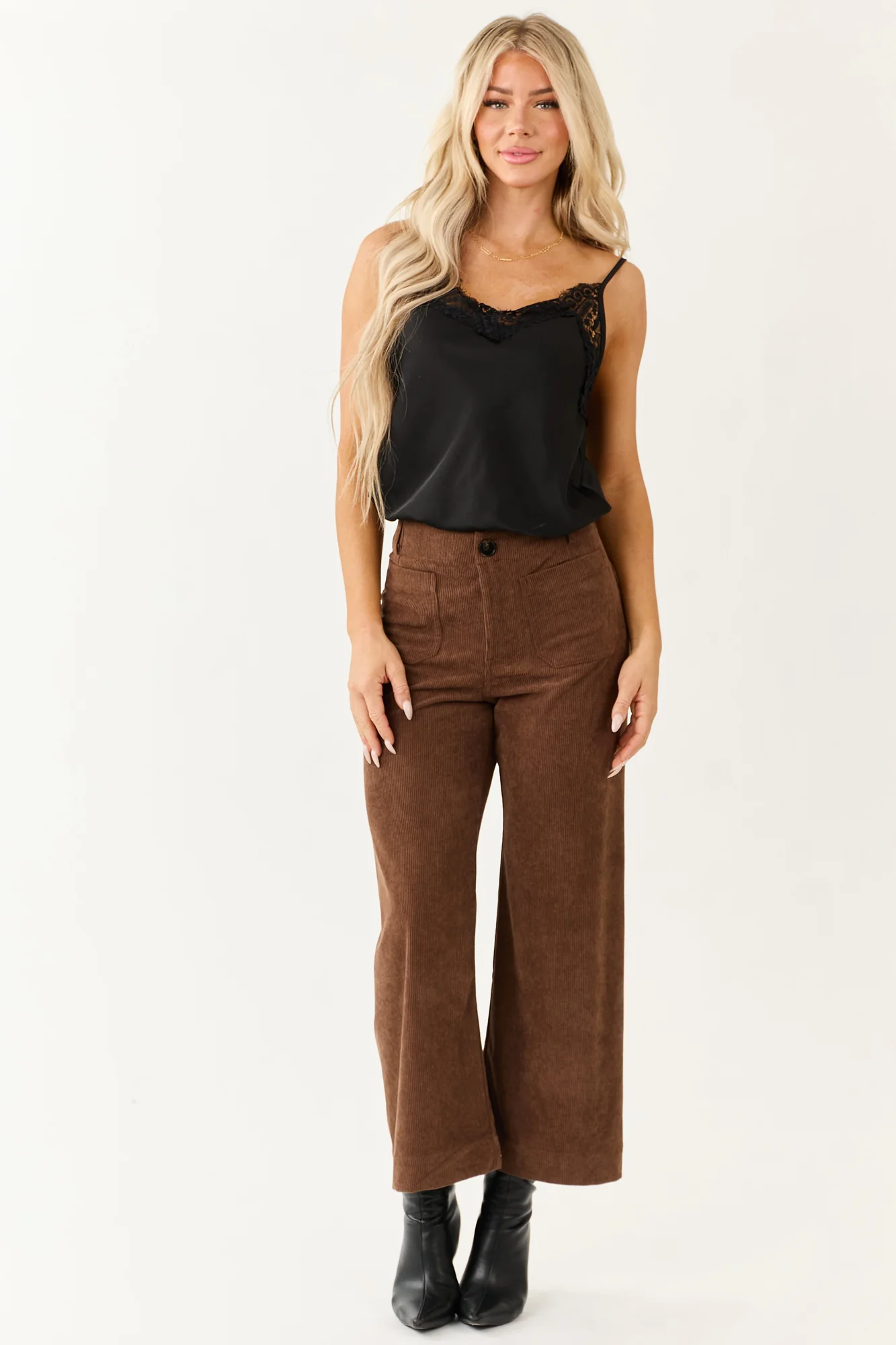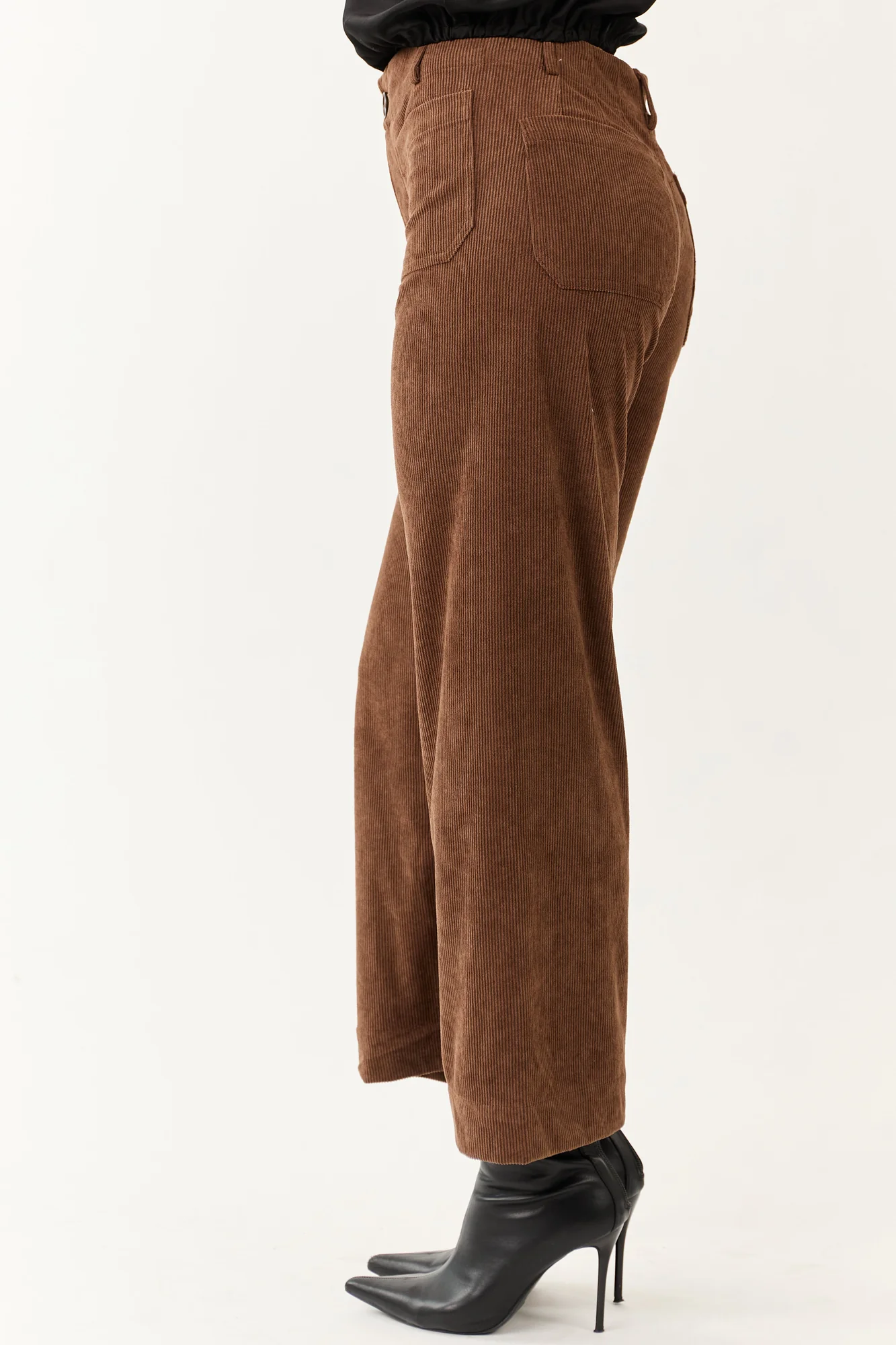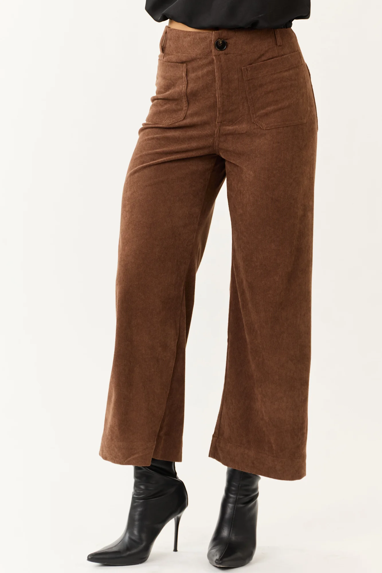 These stylish corduroy pants feature a cropped fit, cute patch pockets, and a rich neutral tone. Designed with a high rise, zipper fly with button closure, belt loops, and 4 pockets, they offer both style and functionality. The non-stretchy corduroy construction ensures durability and timeless appeal. Sizing tip: Fits slightly loose in the waist; consider sizing down if between sizes. Garment specifications for size small: Waist – 28 inches, Hip – 34 inches. Inseam length is 26 inches. Made of 100% polyester. Imported. Model is wearing size Small (Height: 57″, Bust: 35″, Waist: 26″).