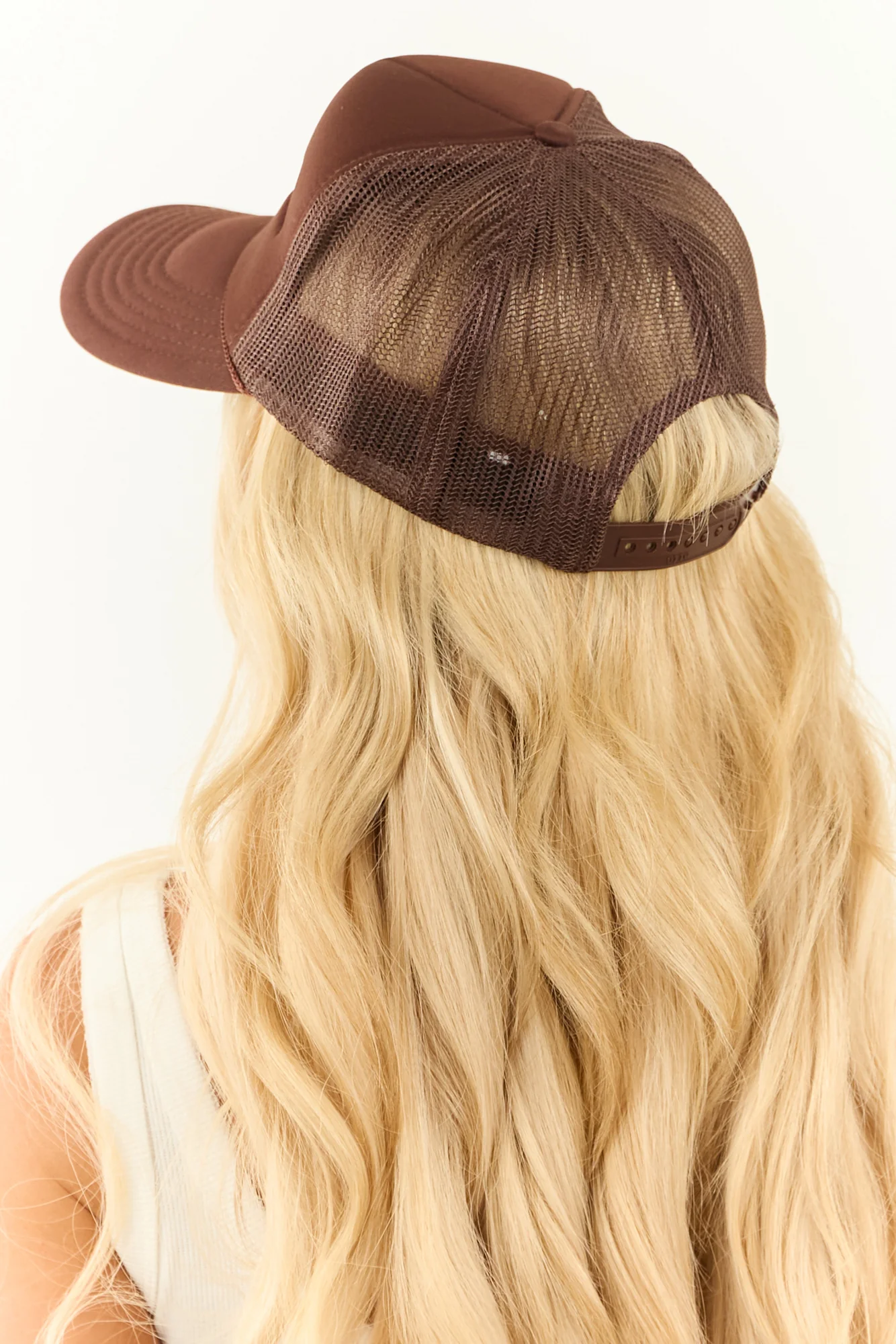 Elevate your style with a touch of country flair and a rebel twist wearing our Chocolate BrownCowgirl EraEmbroidered Trucker Hat. This hat features bubblegum shaded embroidery, cushioned front panel, breathable mesh back, and adjustable snapback closure for a perfect fit. Crafted from 100% Polyester for durability. With a circumference of 24″ and brim height of 3″, this versatile hat suits most sizes. Ideal for adding a statement to your casual and outdoor outfits.