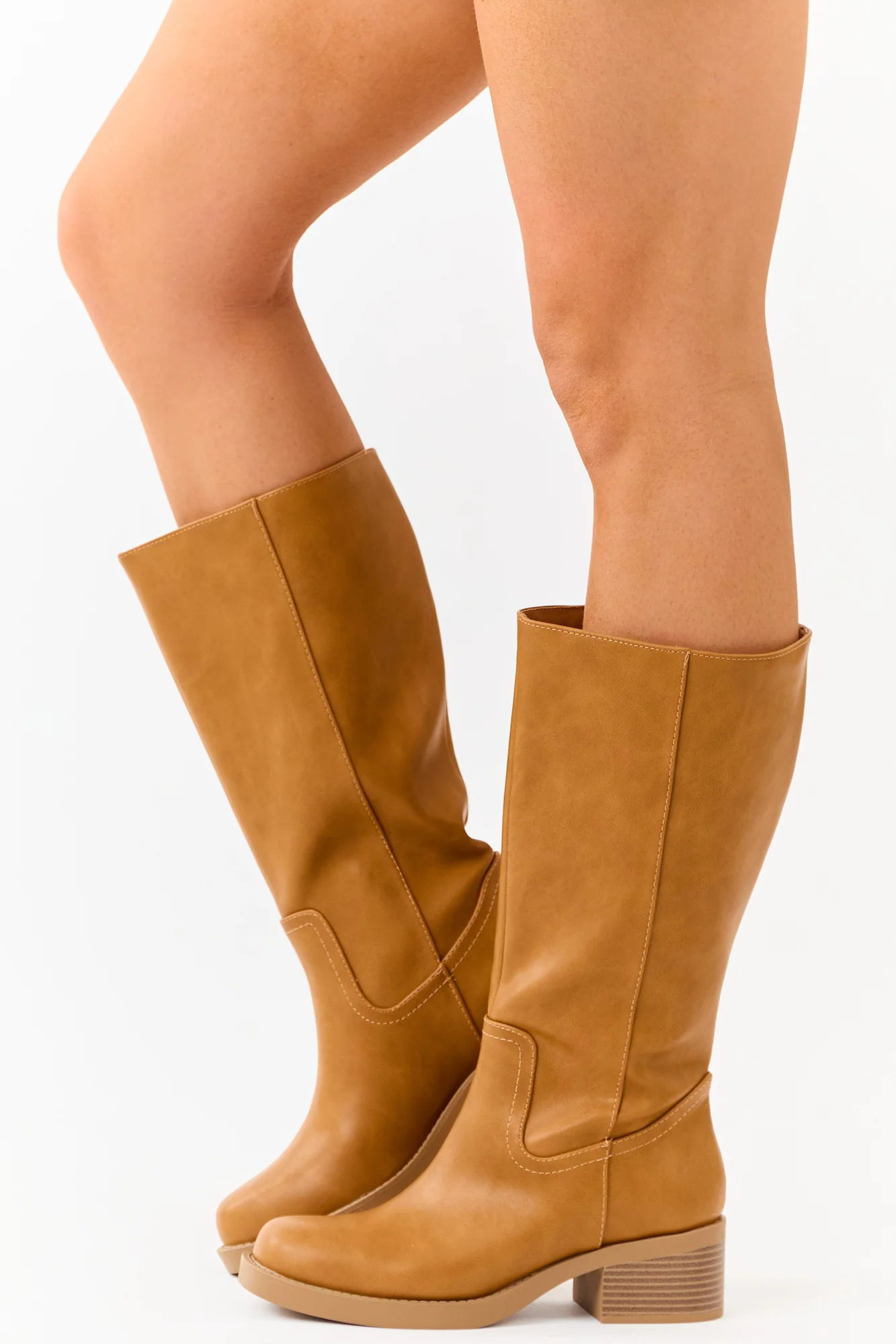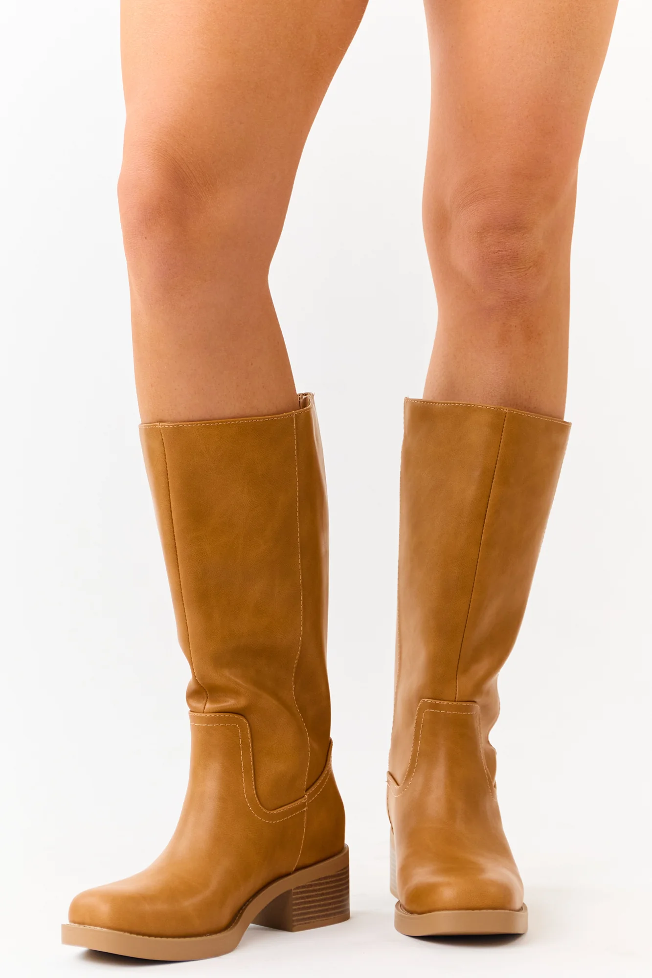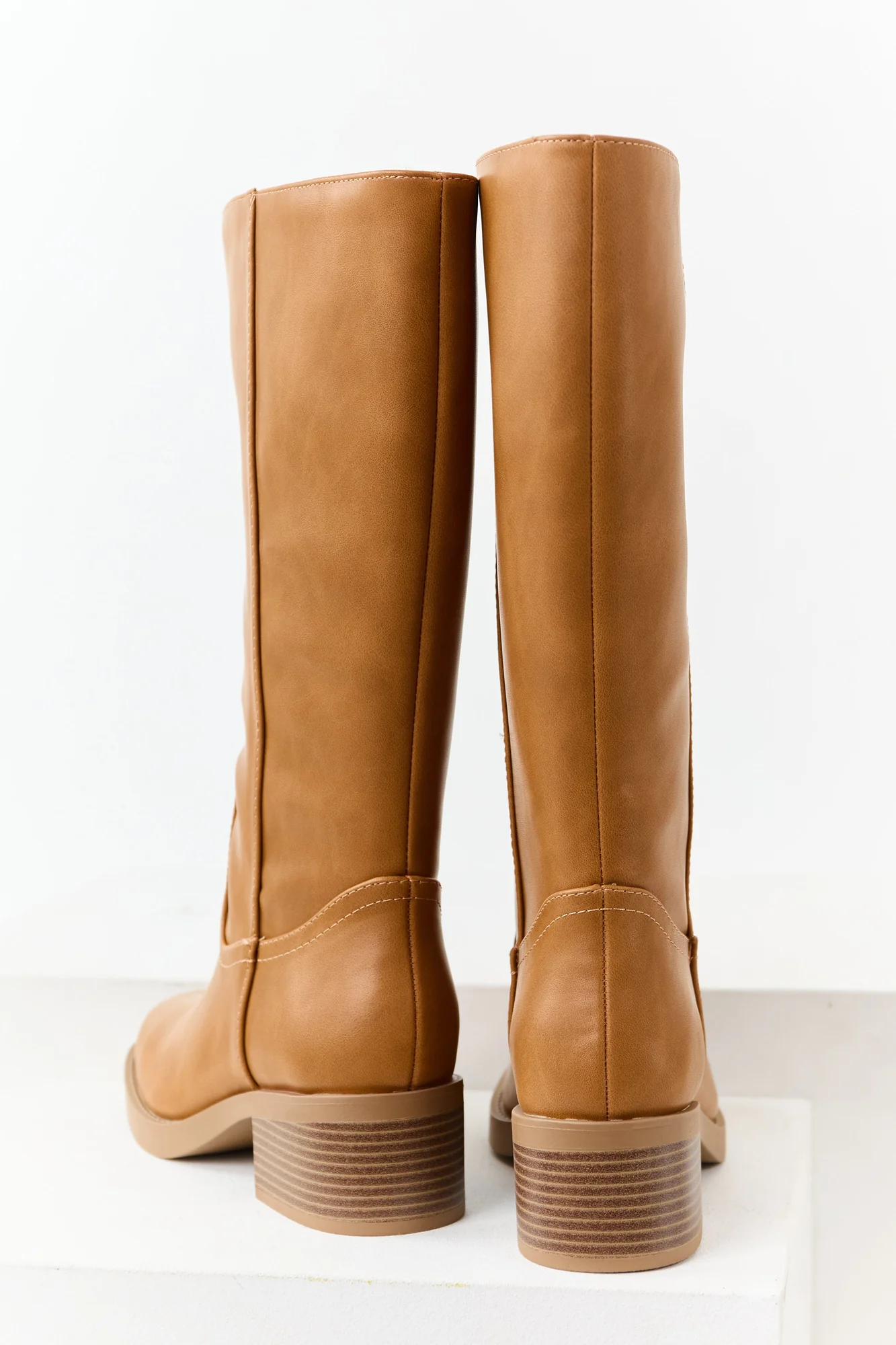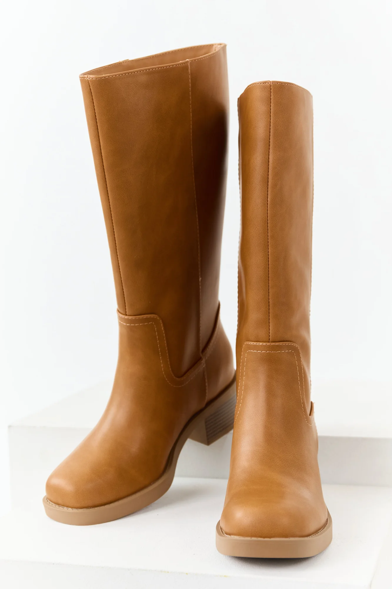 Stay stylish and comfortable with these brown faux leather tall riding boots. Featuring a rounded square toe, stacked 2″ block heel, 14″ shaft, and 17″ circumference, these imported boots offer both fashion and quality. The .5″ platform adds extra flair. Perfect for fall and winter seasons. Choose these boots for a versatile addition to your wardrobe. Available in sizes 5.5 to 11.