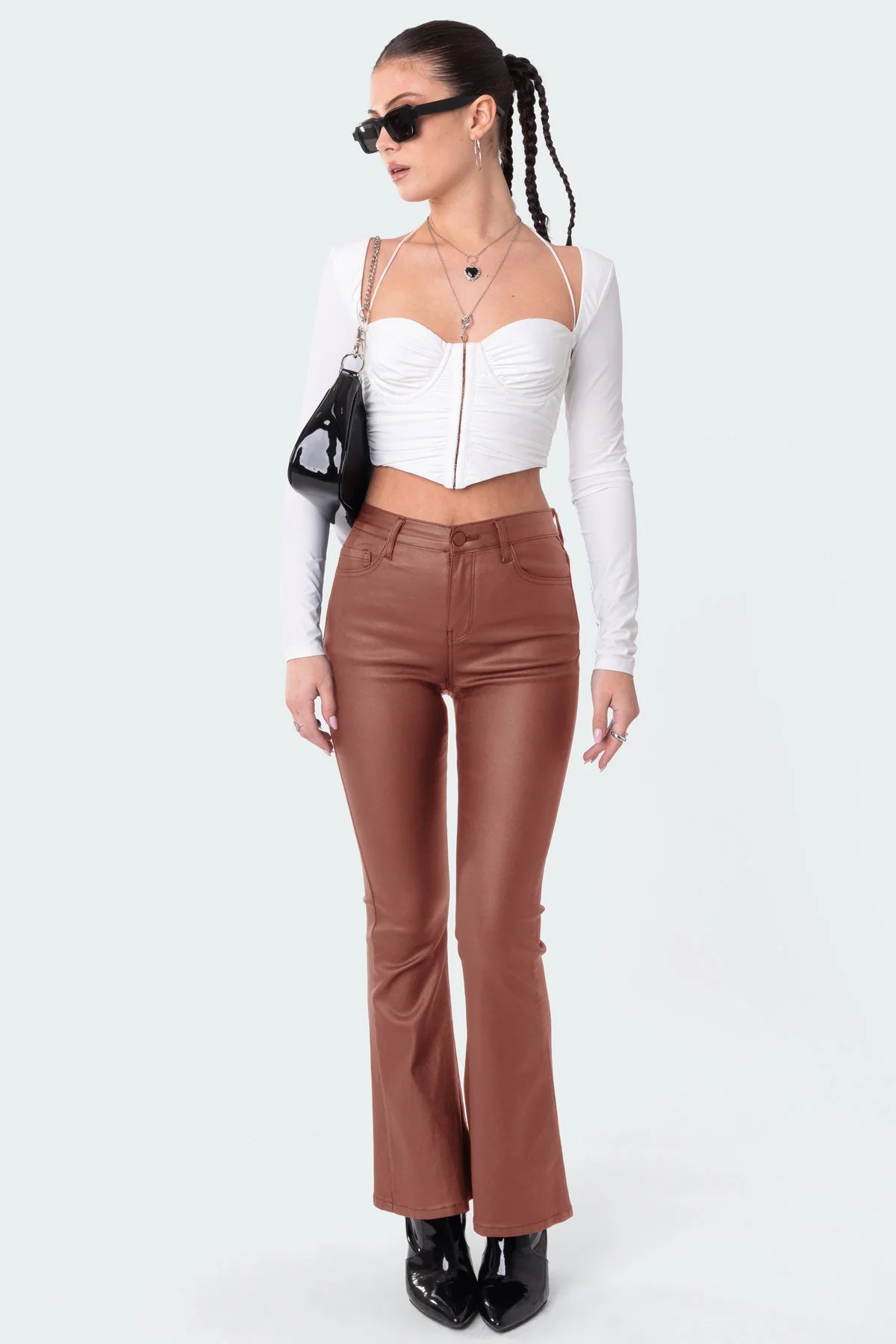 Upgrade your wardrobe with these stylish Flare Pants designed for heights up to 54. Expertly crafted from a blend of Rayon, Poly, and Spandex, these pants offer both comfort and style. The model showcases the size S; you can match your height with the corresponding size for the perfect fit. Care instructions: Hand wash in cool water. Click HERE for the regular fit version. Dont miss this limited-time deal!