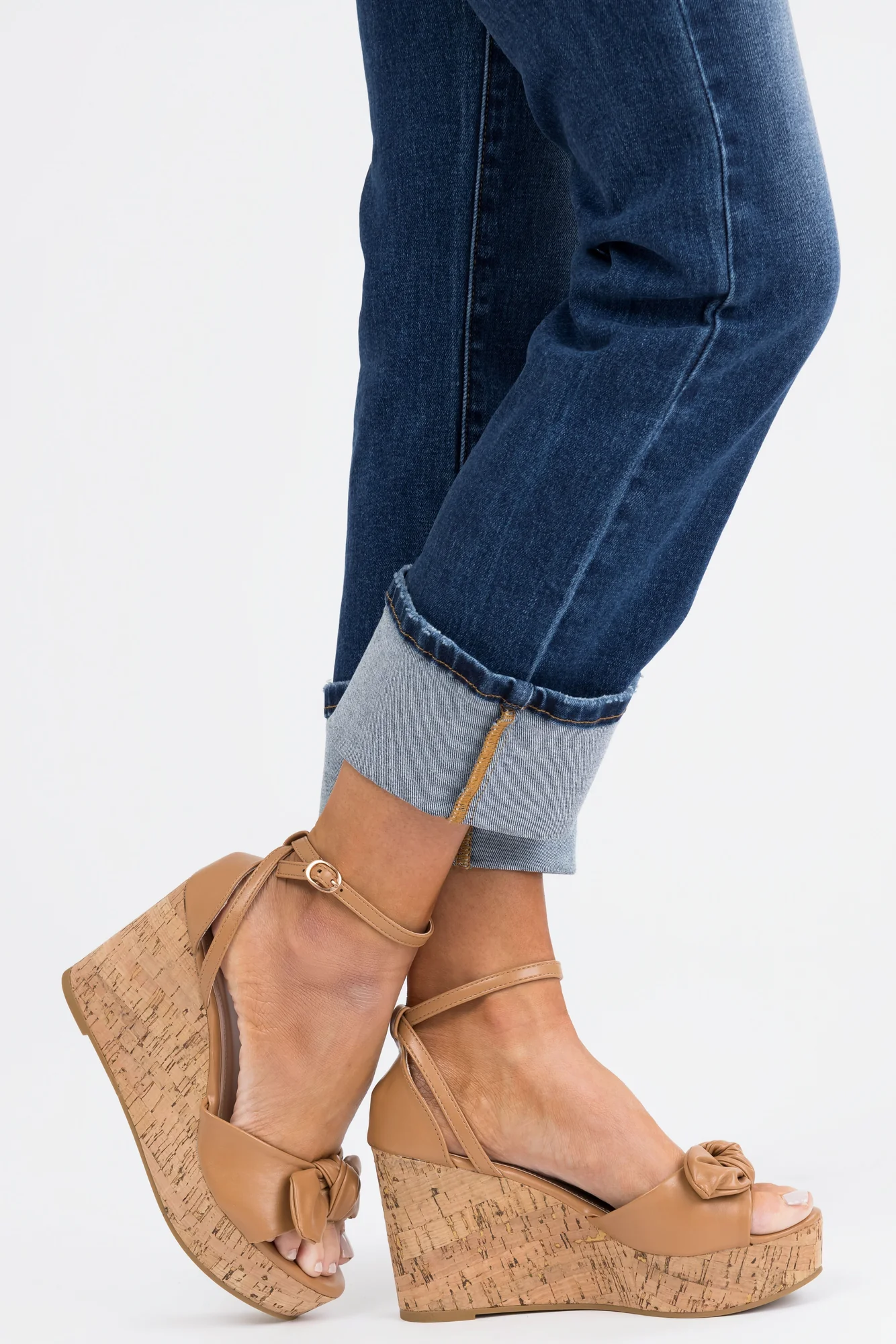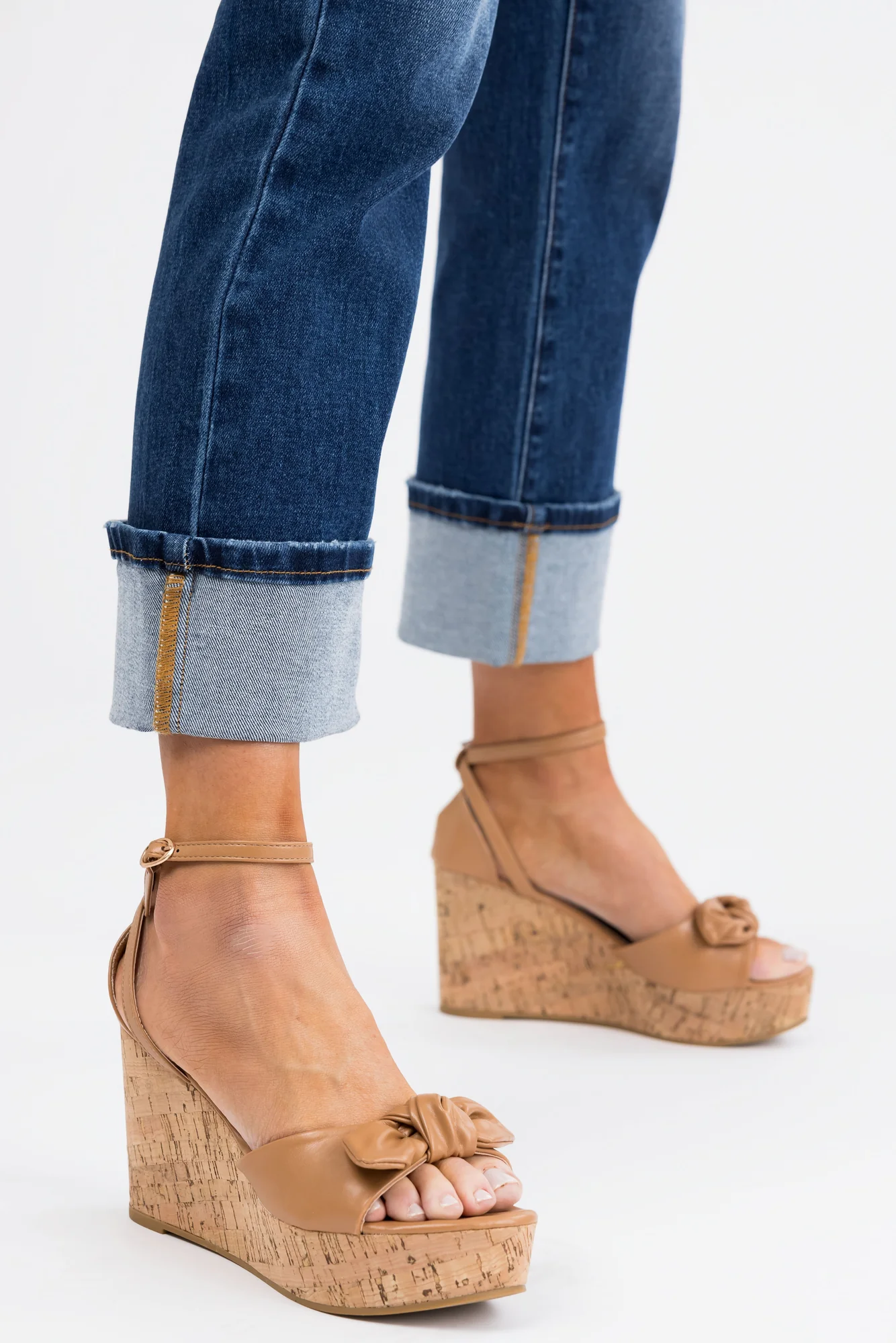Step out in style with these brown faux leather open toe cork wedges. Featuring adjustable buckle ankle strap, a 1.5″ platform, and a 4″ heel, these wedges provide both fashion and comfort. The round toe design and lightly cushioned insole offer all-day wearability. Perfect for casual or date night occasions, these wedges are a must-have addition to your shoe collection. Imported.