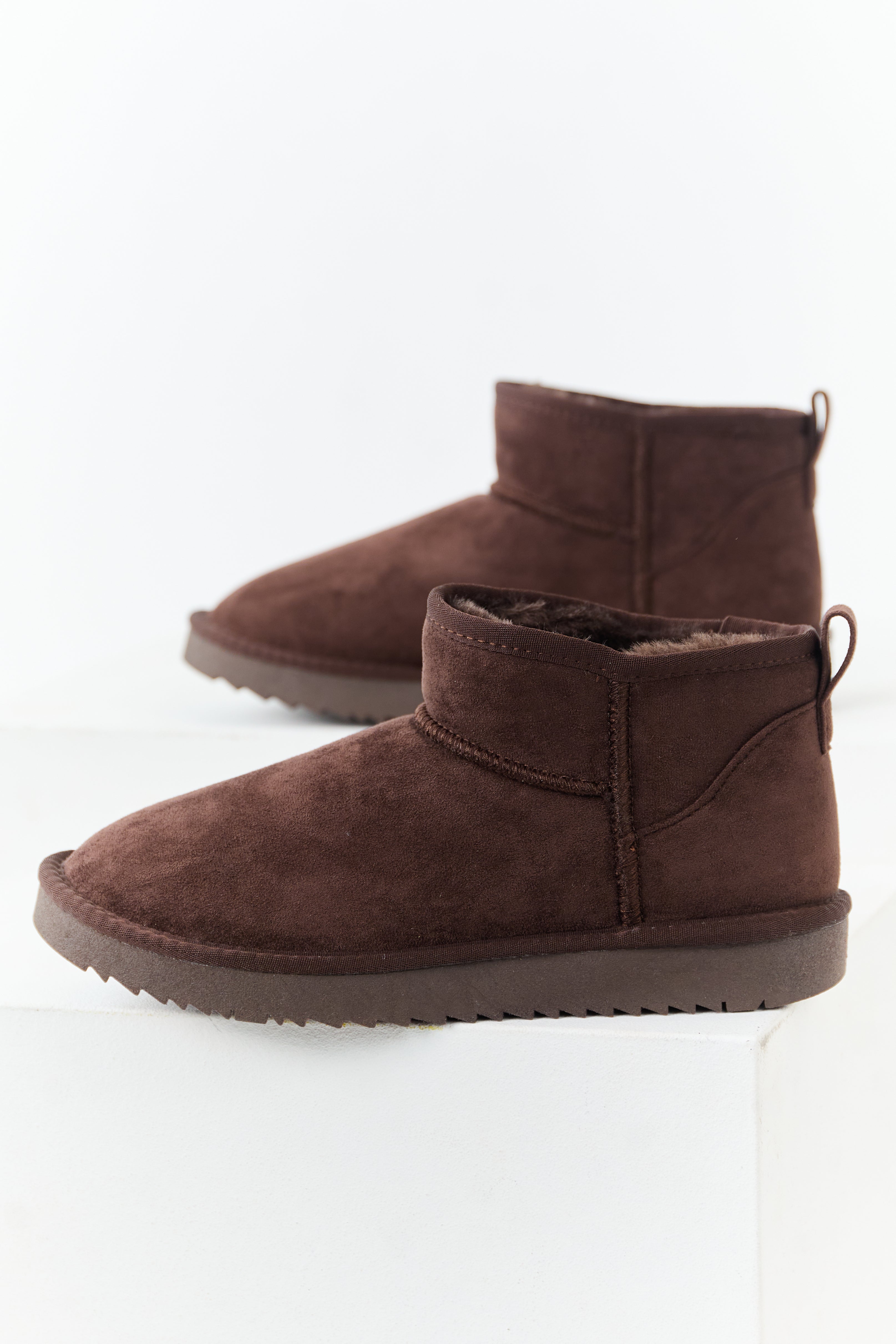 Stay warm and stylish this winter with these faux suede ankle boots, featuring a plush faux fur lining for extra coziness. The rounded toe and back pull tab add to the charm of these boots. With a comfortable platform height of 1 inch, these imported boots have a circumference of 13 inches. Perfect for cold days out or cozy nights in.