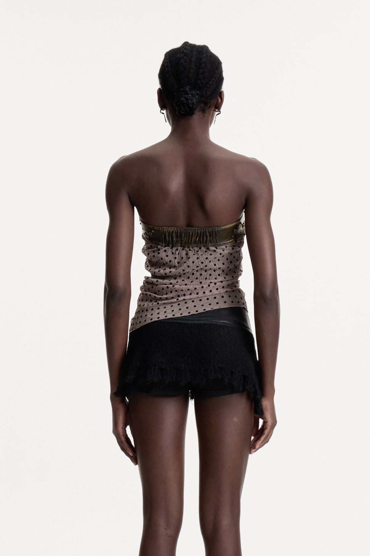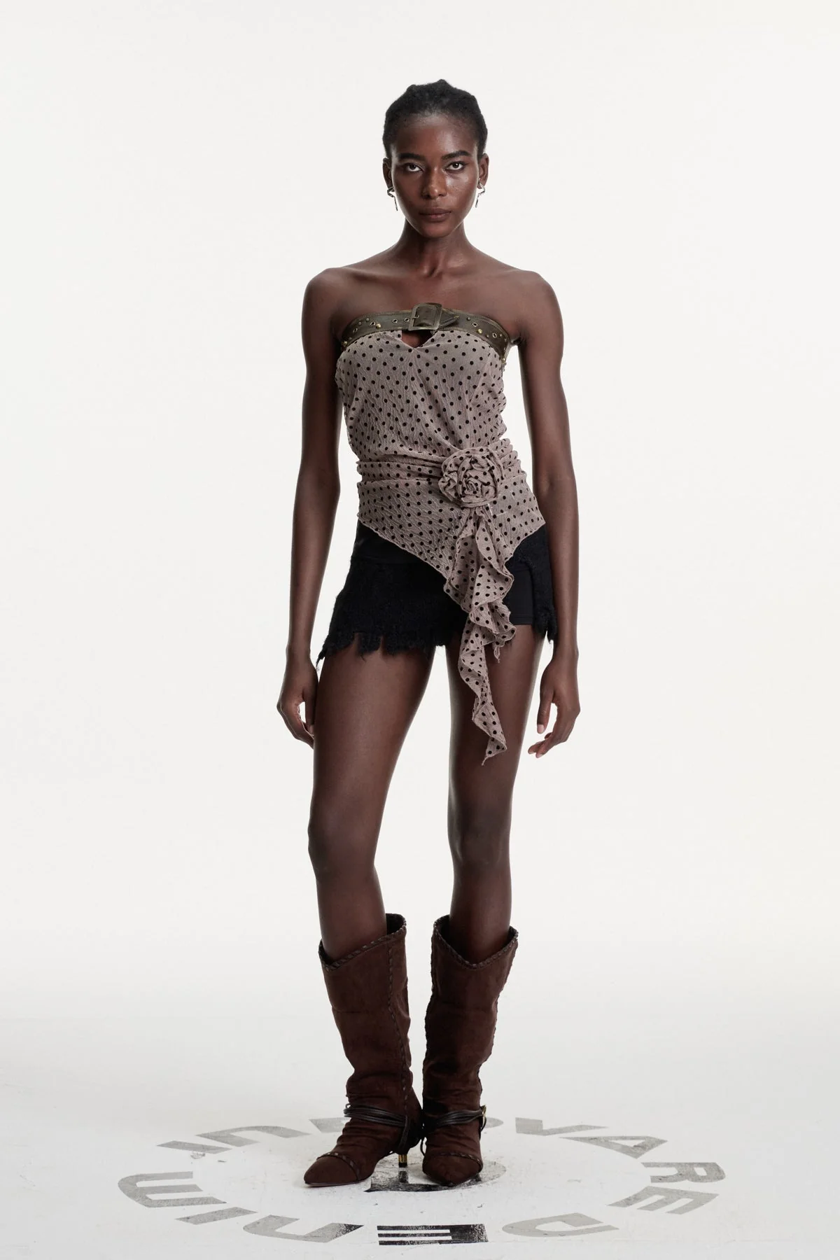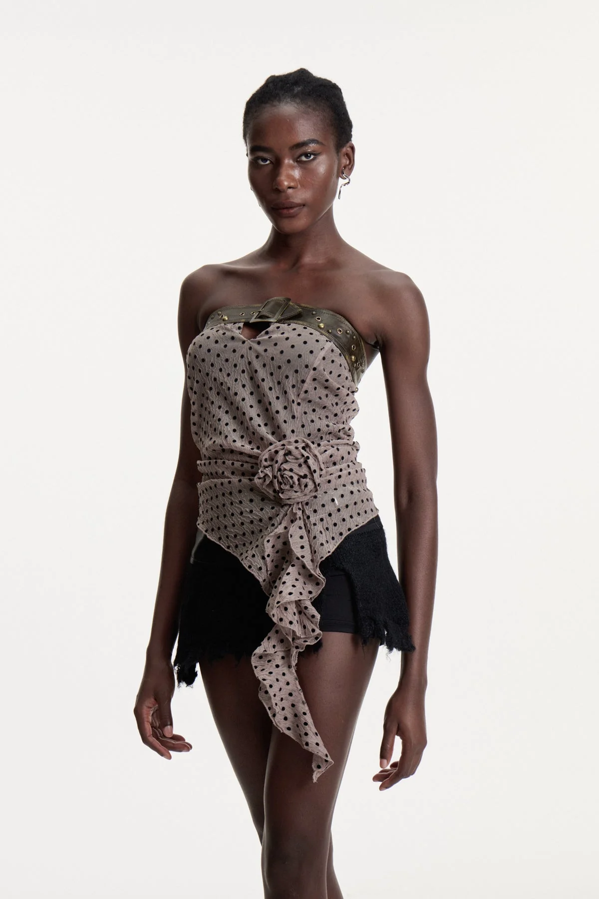 The Brown Floral Dot Top with Buckle Detail combines a delicate floral pattern with a modern buckle detail to offer a refined yet contemporary look. This top is crafted for both comfort and style and enhances your wardrobe with its unique design elements, perfect for casual or dressier occasions. Expert tailoring ensures a flattering fit for various body types. Enjoy the non-stretch fabrics streamlined silhouette. Gentle machine wash recommended. Please note that color may vary due to lighting in images.