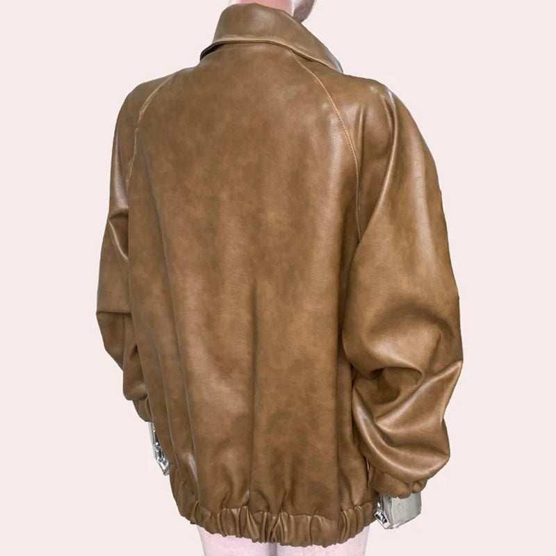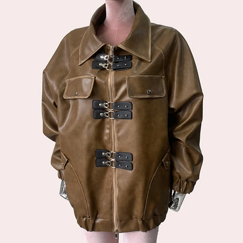 Upgrade your wardrobe with our Limited Edition Brown Oversized Faux Leather Jacket designed to command attention. Made from a blend of Premium Faux Leather and Cotton, this high-quality jacket adds a touch of sophistication to your outfit. Embrace the unique charm of our Womens Oversized Leather Jacket available in sizes S, M, L, and XL. The size chart provides exact measurements in centimeters and inches. Shop worry-free with our commitment to your satisfaction!