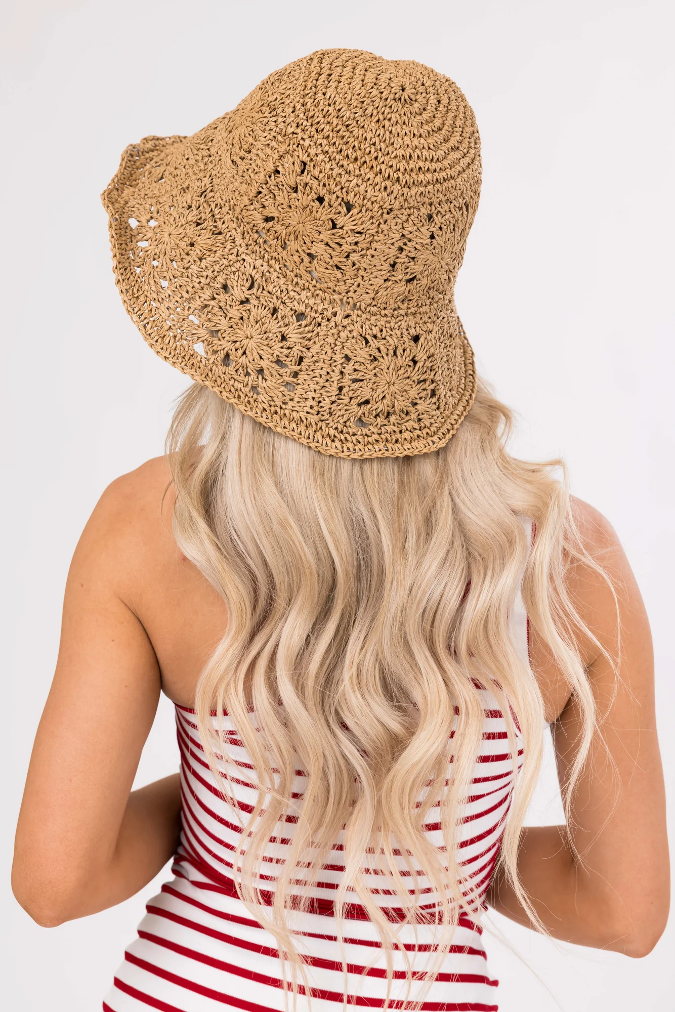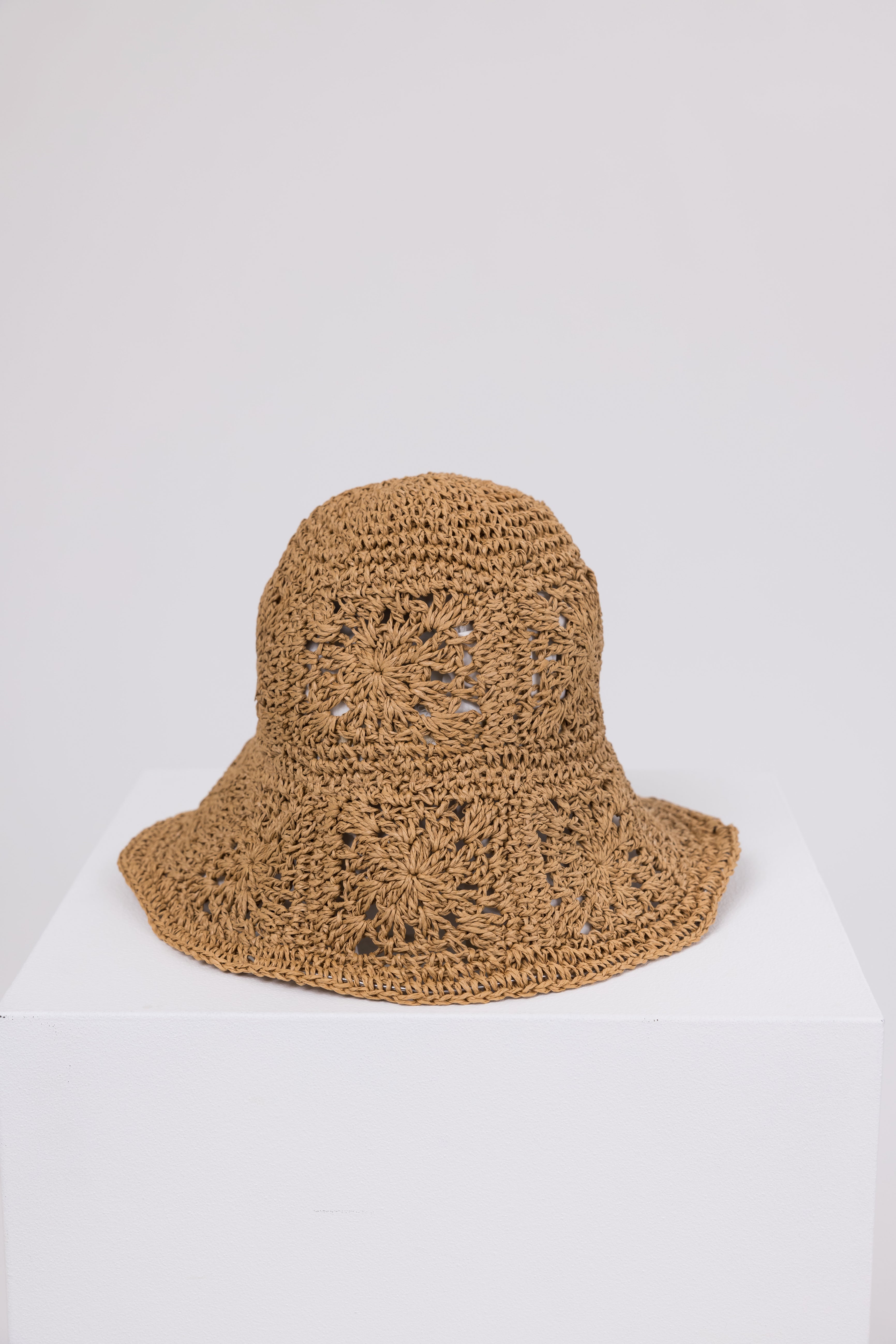 Stay stylish and shielded from the sun with our Brown Patterned Straw Bucket Hat. This bell-shaped hat features a wired trim, inner adjustable sweatband, and is imported for quality. Made of 100% Paper, it has a height of 5.5 inches, brim measuring 3.5 inches, and a circumference of 23 inches, ensuring a comfortable fit that complements any casual or daytime outfit.