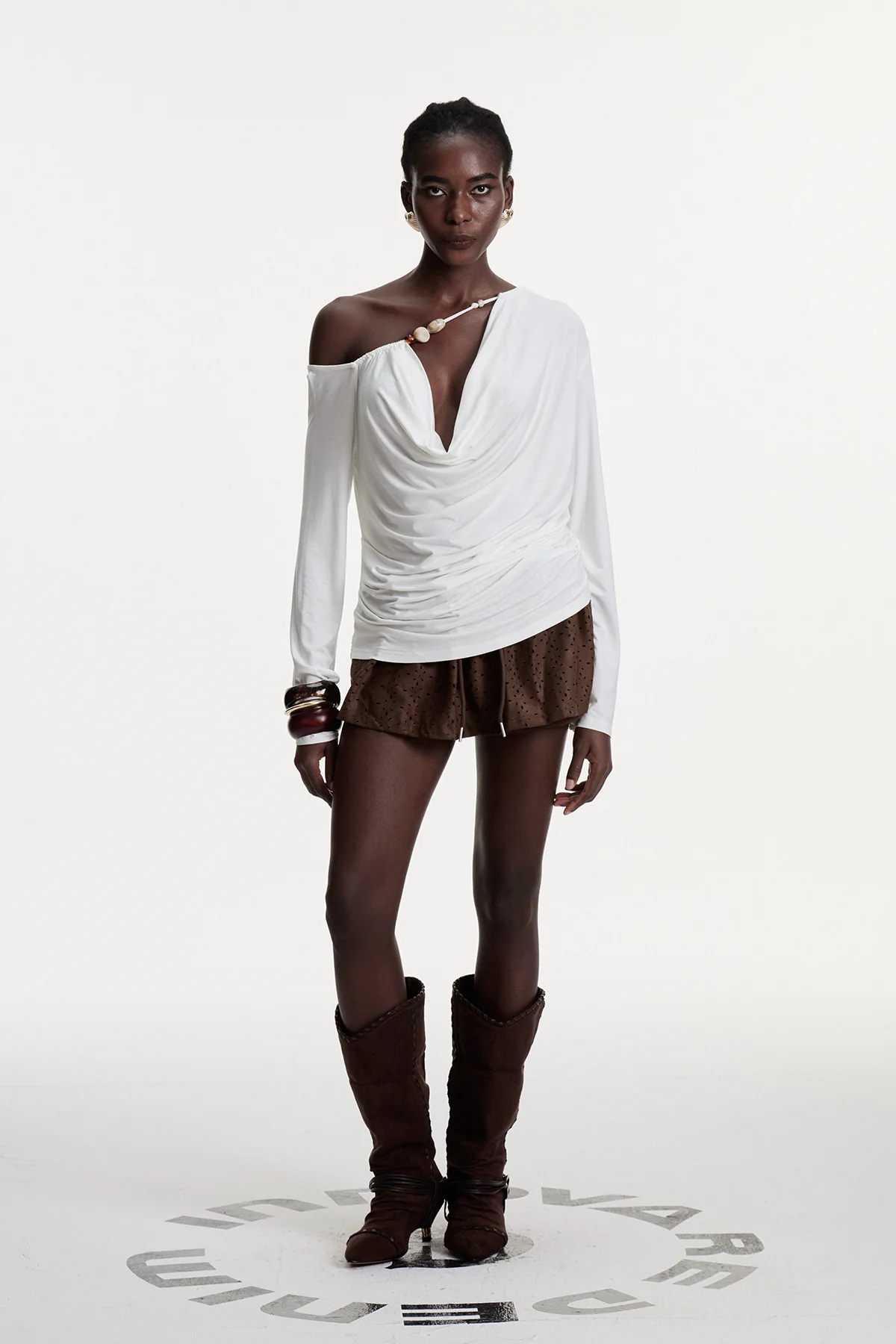 Elevate your outfit with the Ruffle Layered Mini Skirt in brown! This skirt boasts a charming ruffle design that enhances movement and dimension. Precision-crafted for a flattering silhouette, the mini length offers versatility from casual to dressy looks. Enjoy sophistication with a playful touch in this wardrobe essential perfect for every fashion-forward individual. Non-Stretch material. Care Instructions: Machine wash gently. Lighting may cause color variation in images.