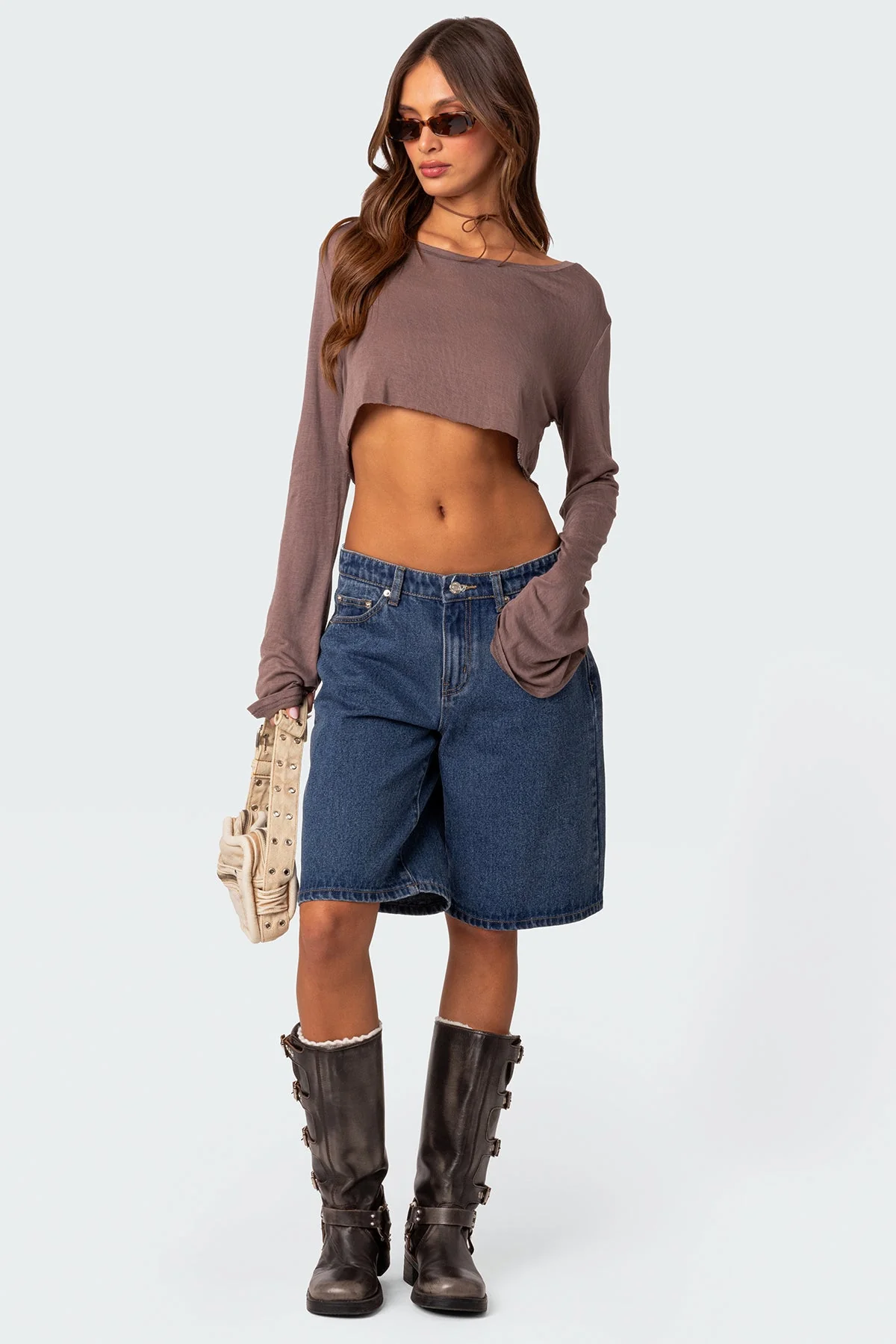 Indulge in luxurious comfort with our Brown Sheer Cropped Long Sleeve Top. Crafted from a blend of Polyester and Rayon, this loungewear essential features raw hem detailing for added style. The sheer fabric adds an elegant touch to your wardrobe. Pair it effortlessly with your favorite bottoms for a chic and trendy look that stands out. Care Instructions: Machine wash with similar colors to maintain its pristine condition.