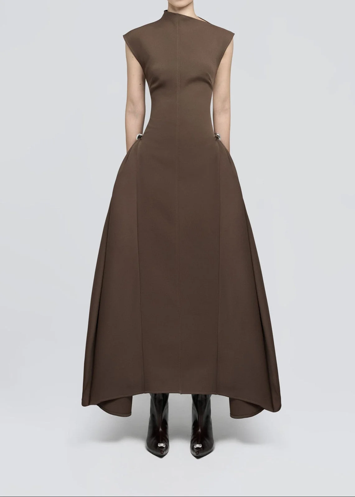 Elevate your style with our gorgeous Brown Sleeveless Maxi Dress featuring an irregular hem. This dress is designed to flatter your figure, offering a perfect fit according to our size chart. The color may vary slightly due to lighting in images. Choose your ideal size based on our size chart for a stunning look every time you wear it.