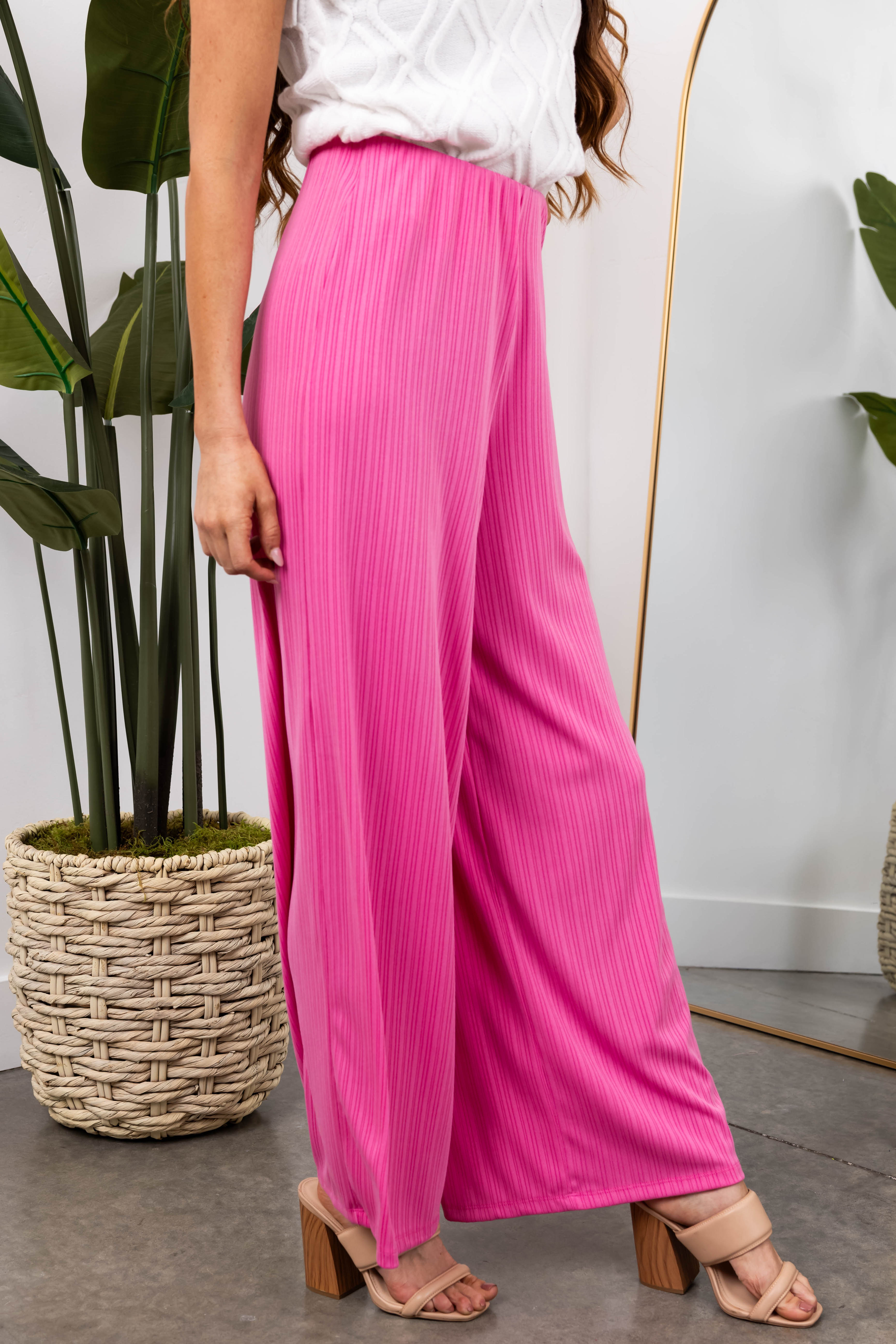 Upgrade your wardrobe with our She+Sky Bubblegum Ribbed Knit Wide Leg Pants. These pants feature a stretchy ribbed knit design, an elastic super high waistband, and a comfortable fit. The pants are made of 95% Polyester and 5% Spandex, making them both stylish and easy to care for. Whether for work or a casual day out, these pants will keep you looking fashionable and feeling great. Available in sizes S, M, and L.
