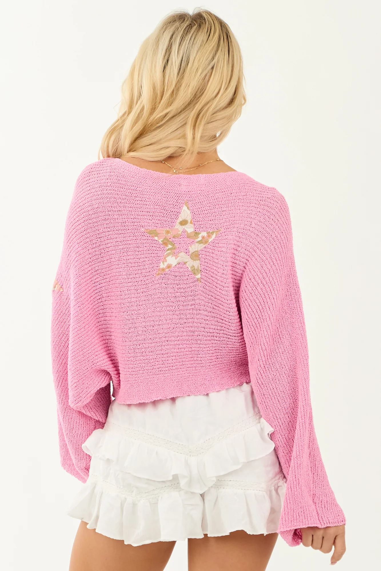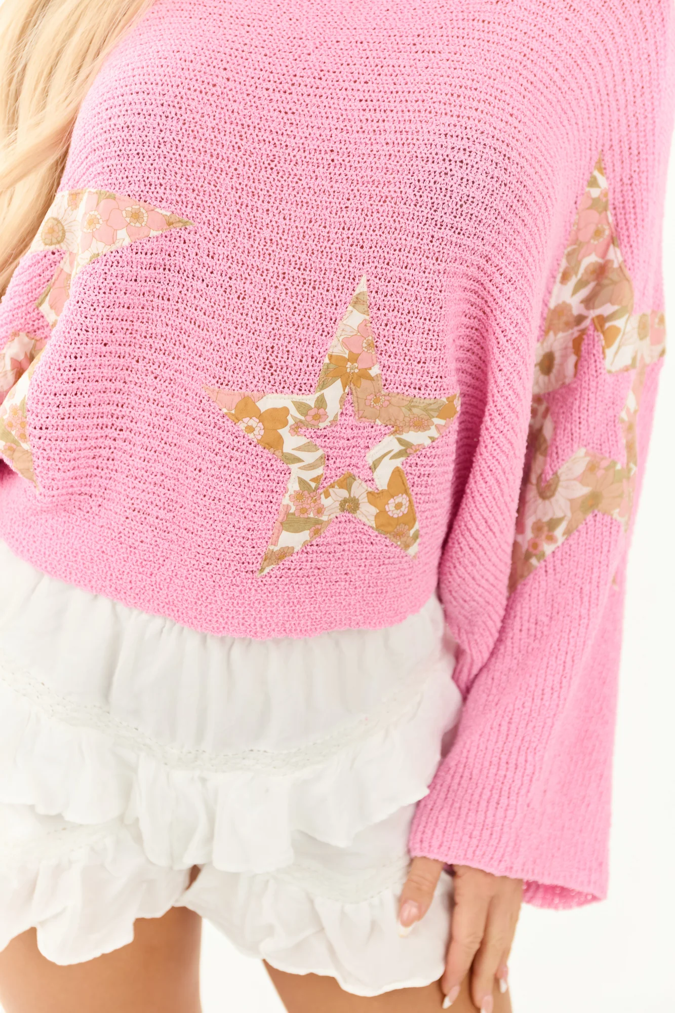 Stay cozy and cute in this bubblegum star print knit top. Enjoy the oversized fit, stretchy knit fabric, and vibrant floral star print in Ivory, Punch, Olive, Hunter Green, Bubblegum, Ginger, and Blush colors. This top features long sleeves, a semi-sheer design, and a fashionable boat neckline. Made of 55% Acrylic and 45% Polyester for comfort and style. Note: Each piece may vary slightly due to the printing and sewing process. Model is wearing a size Small. Model stats: Size 1, Height 57″, Bust 34″, Waist 26″.