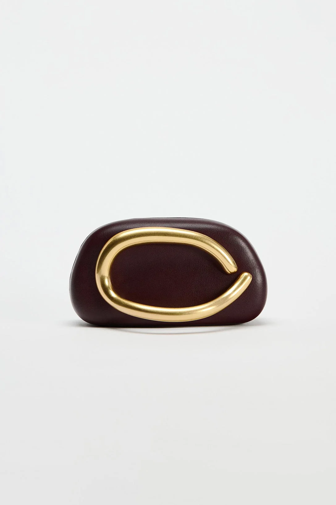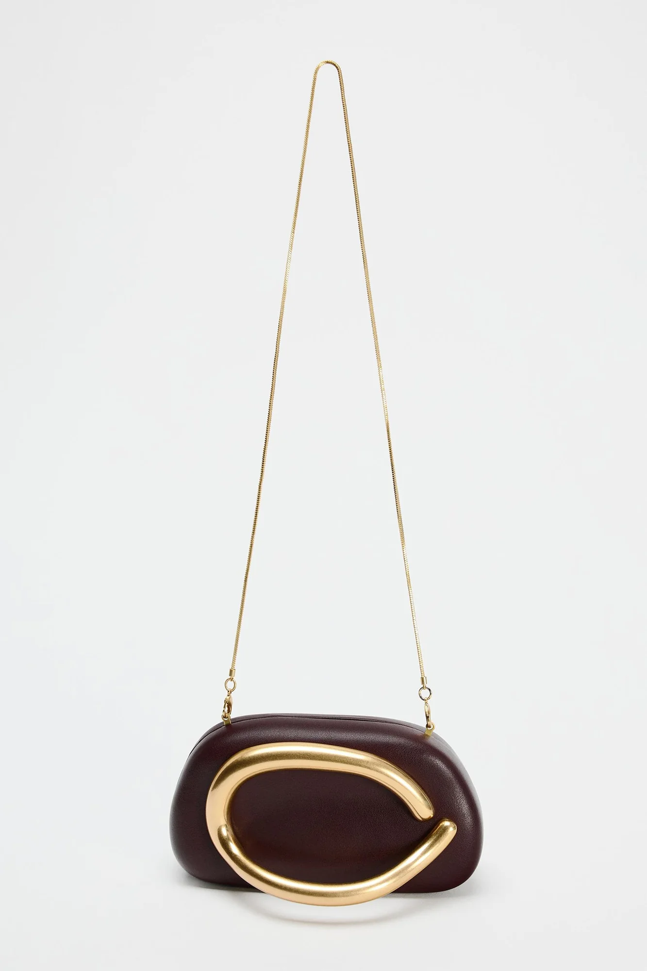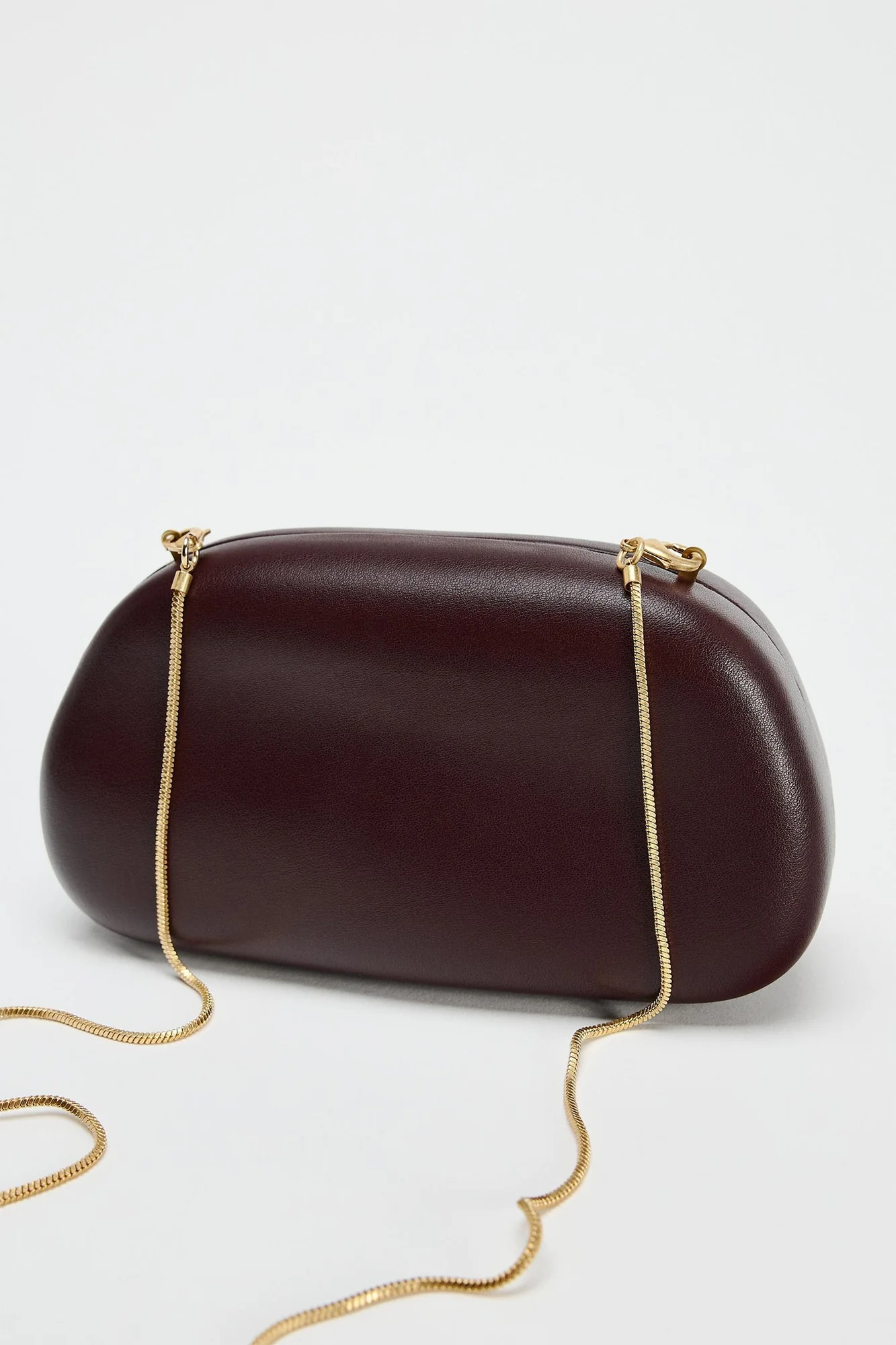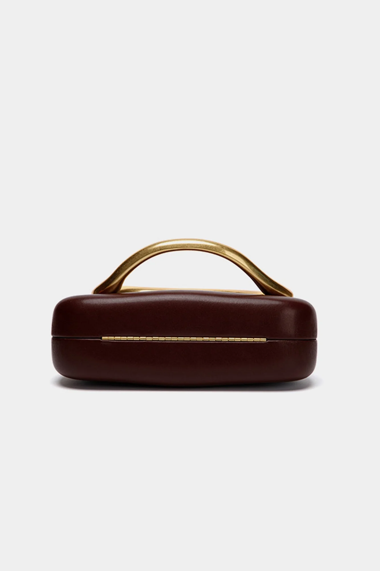 Tags: burgundy accessory, chic handbag, fashionista essential, hat bag, metal box bag