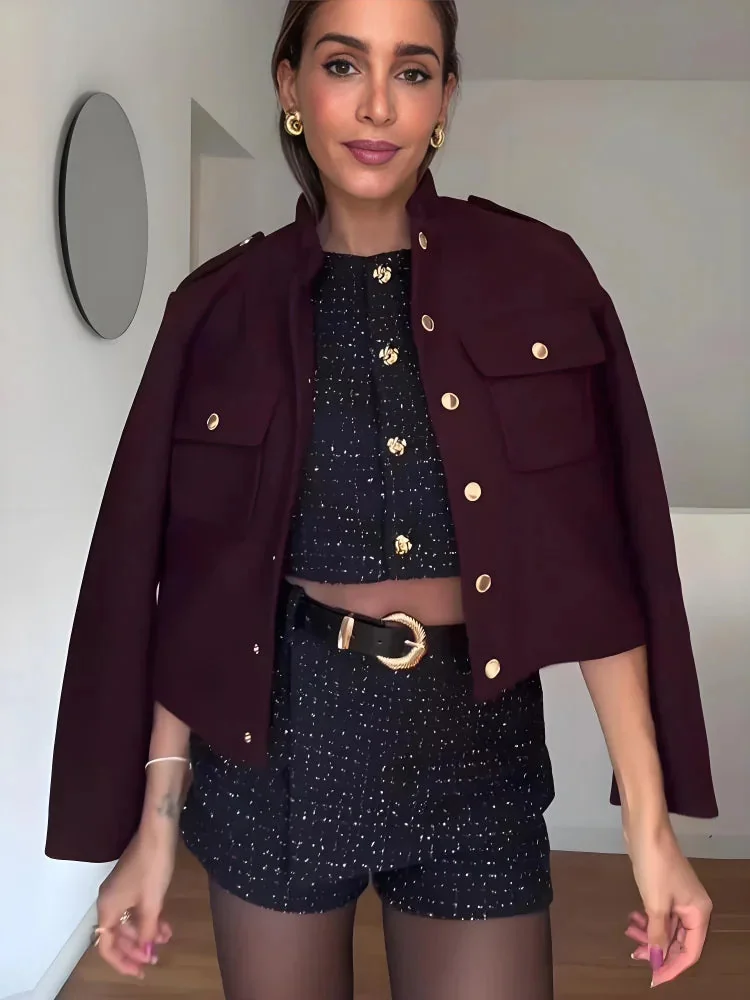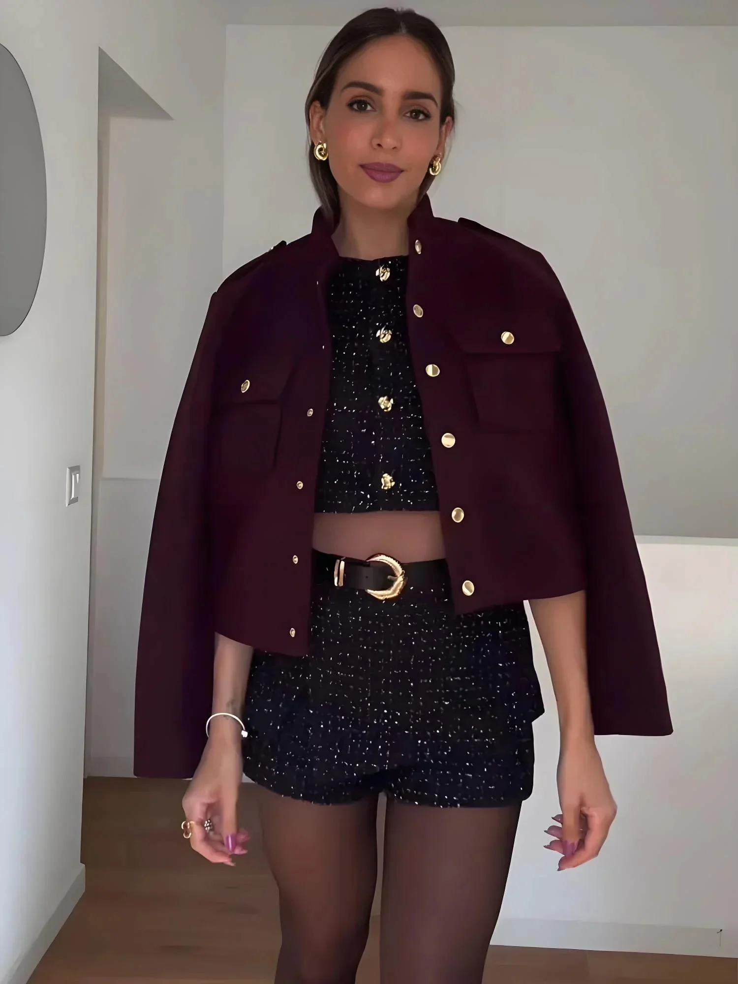 Indulge in the charm of our Limited Edition Burgundy Vintage Classic Womens Jacket. Crafted from a luxurious blend of Cotton & Polyester, this showstopper exudes elegance. Elevate your style effortlessly with this high-quality jacket that promises to turn heads wherever you go. Explore our size chart for the perfect fit and embrace timeless sophistication with this classy piece .