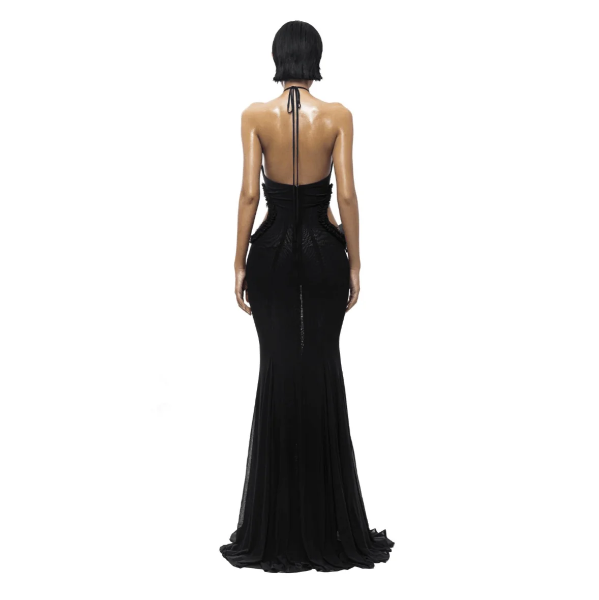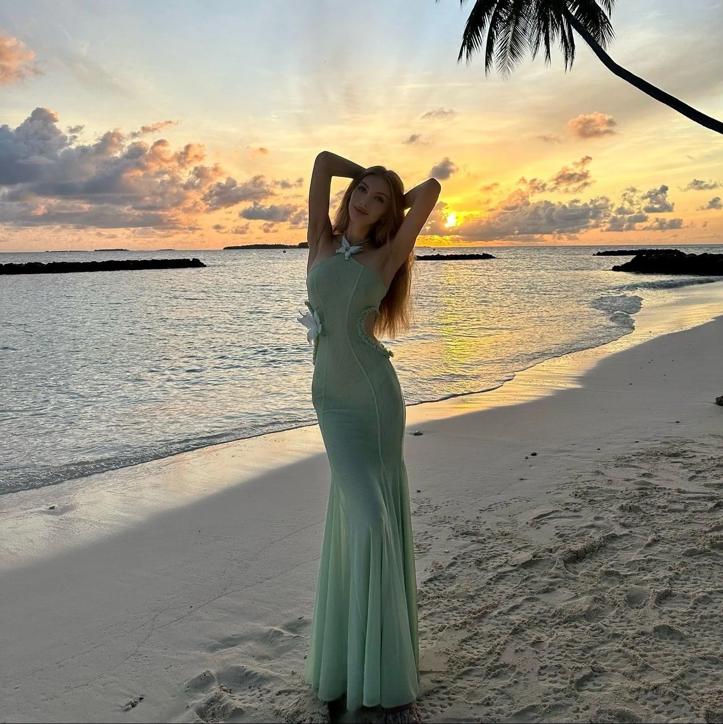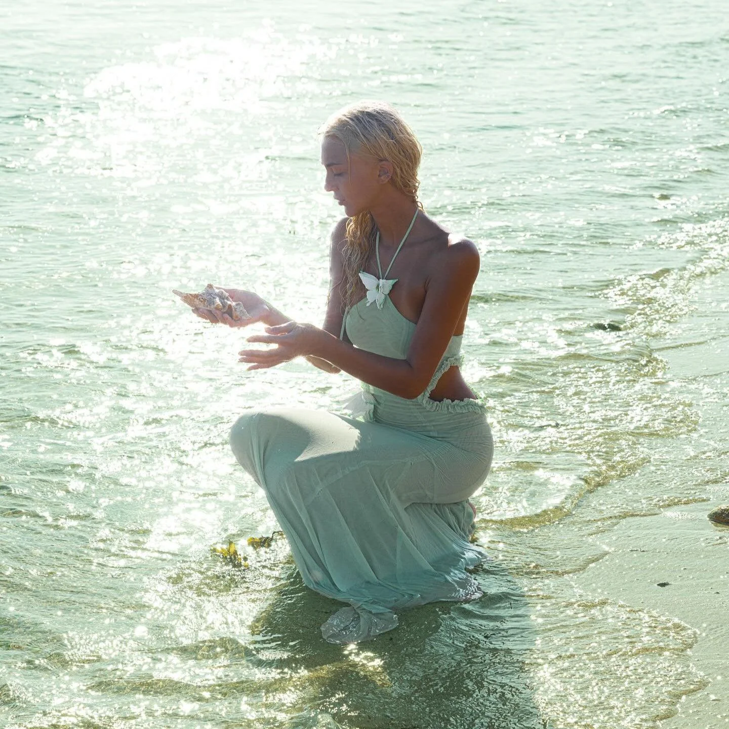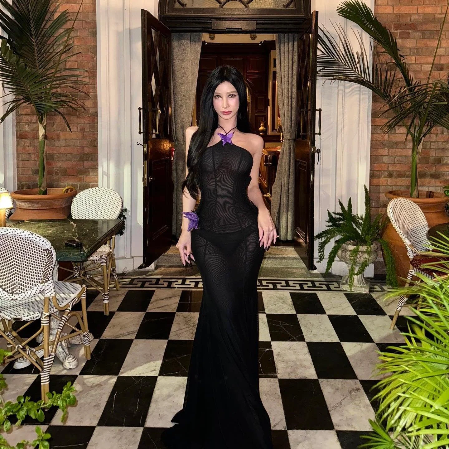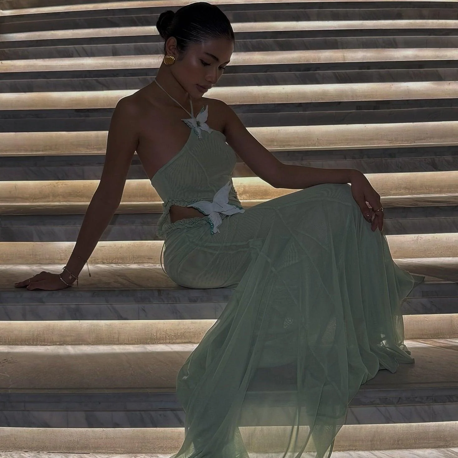 Indulge in the enchanting allure of the Butterfly Halter Elegant Maxi Dress offered in two opulent shades. This halter neckline dress features delicate butterfly embellishments for a charming and distinct look. The form-fitting design accentuates your figure, while the side cutouts add a playful touch. Made from a comfy, stretchy fabric, this maxi dress combines comfort and style seamlessly. The mermaid-style hemline cascades gracefully, exuding elegance with every step you take. Ideal for formal events and special occasions, this dress is a show-stopper. Complete your ensemble with minimal accessories for a captivating appearance. Experience fashion at its finest with our Instagram account @mermaid_way. Enjoy hassle-free size exchanges for the perfect fit.