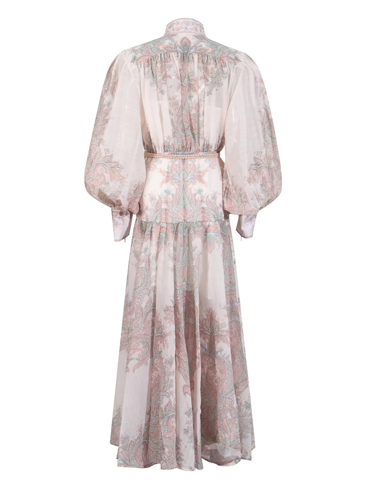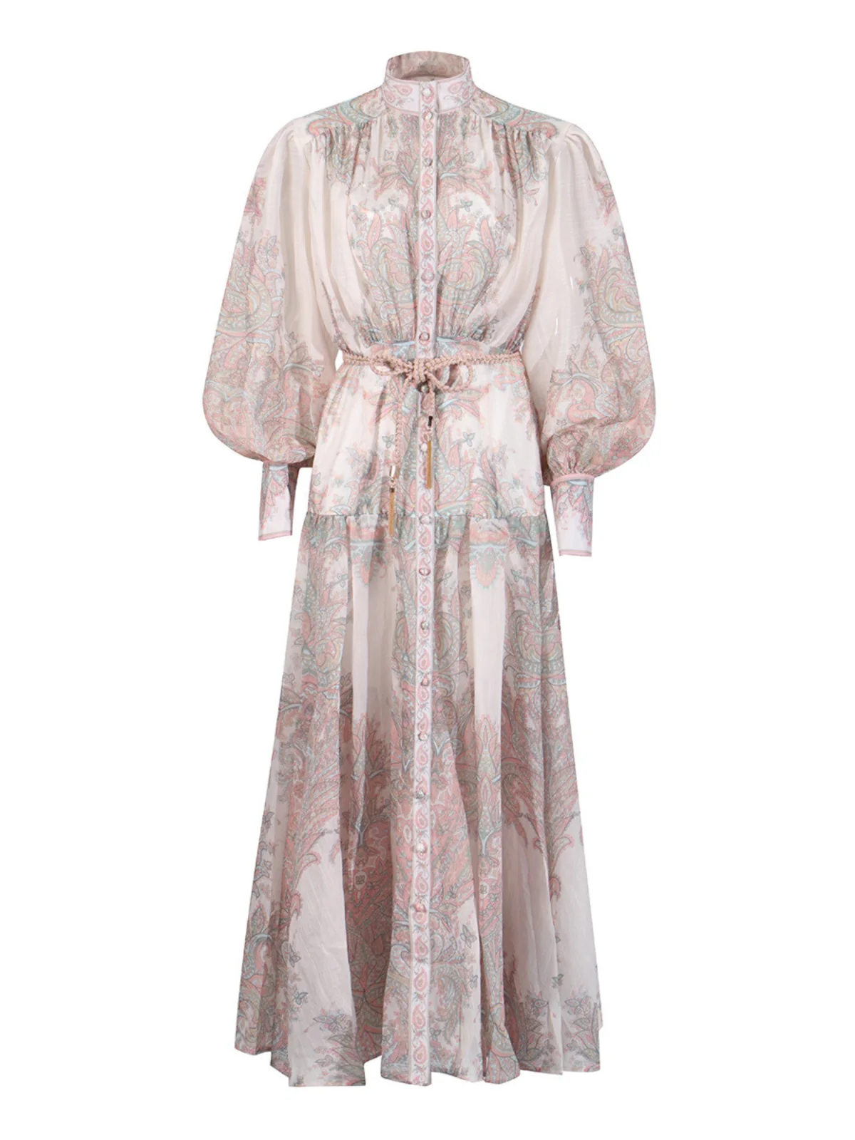 Elevate your wardrobe with the Button-Up Floral Maxi Dress from Li Fu. This stunning dress features a graceful high neckline, delicate button-up front, and a flowing maxi length. The vibrant floral pattern adds a touch of charm, making it perfect for both casual outings and special occasions. Enjoy effortless style and comfort with slight stretch in 100% Polyester material. Dry clean only. Color variations may occur due to lighting. Size options available: S, M, L.