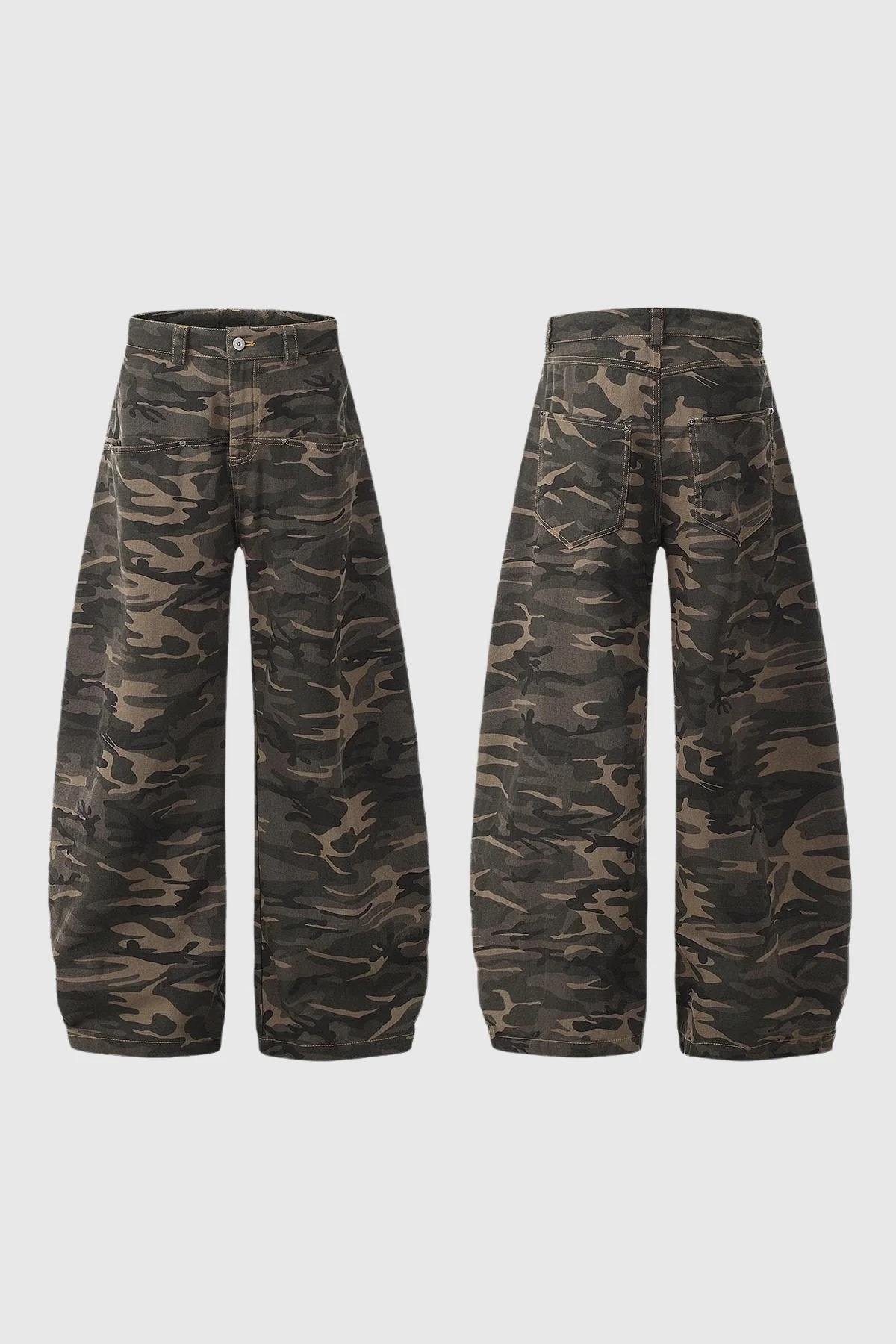 Elevate your wardrobe with these Becka Camouflage Print Curved Leg Jeans . Designed for comfort and style, these jeans feature a unique camouflage print and curved leg design for a modern, trendy look. Made from high-quality 50% Polyester and 50% Cotton materials, these jeans offer durability and style in one. Perfect for a fashionable urban edge, these jeans are non-stretch for a clean, chic silhouette. Easy to maintain with a gentle machine wash. Note: Color may vary due to lighting. Embrace the must-have trend with this versatile piece.