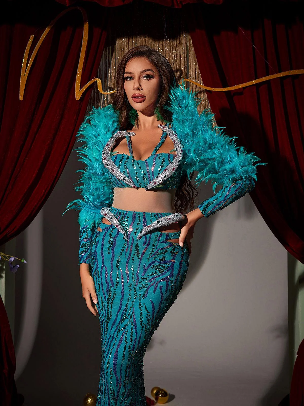 This stunning Capitvating Snake Rhinestone Feather Maxi Dress is a true showstopper! Made with shimmering rhinestones, a captivating snake print, and beautiful feathers, this dress is a must-have for any special occasion. Crafted with care from 100% Polyester, it features an invisible zipper at the back. Please note that the color may vary slightly due to lighting. Get ready to turn heads in this exquisite piece that adds a touch of glamour to your wardrobe! MODEL WEARING SIZE: S.