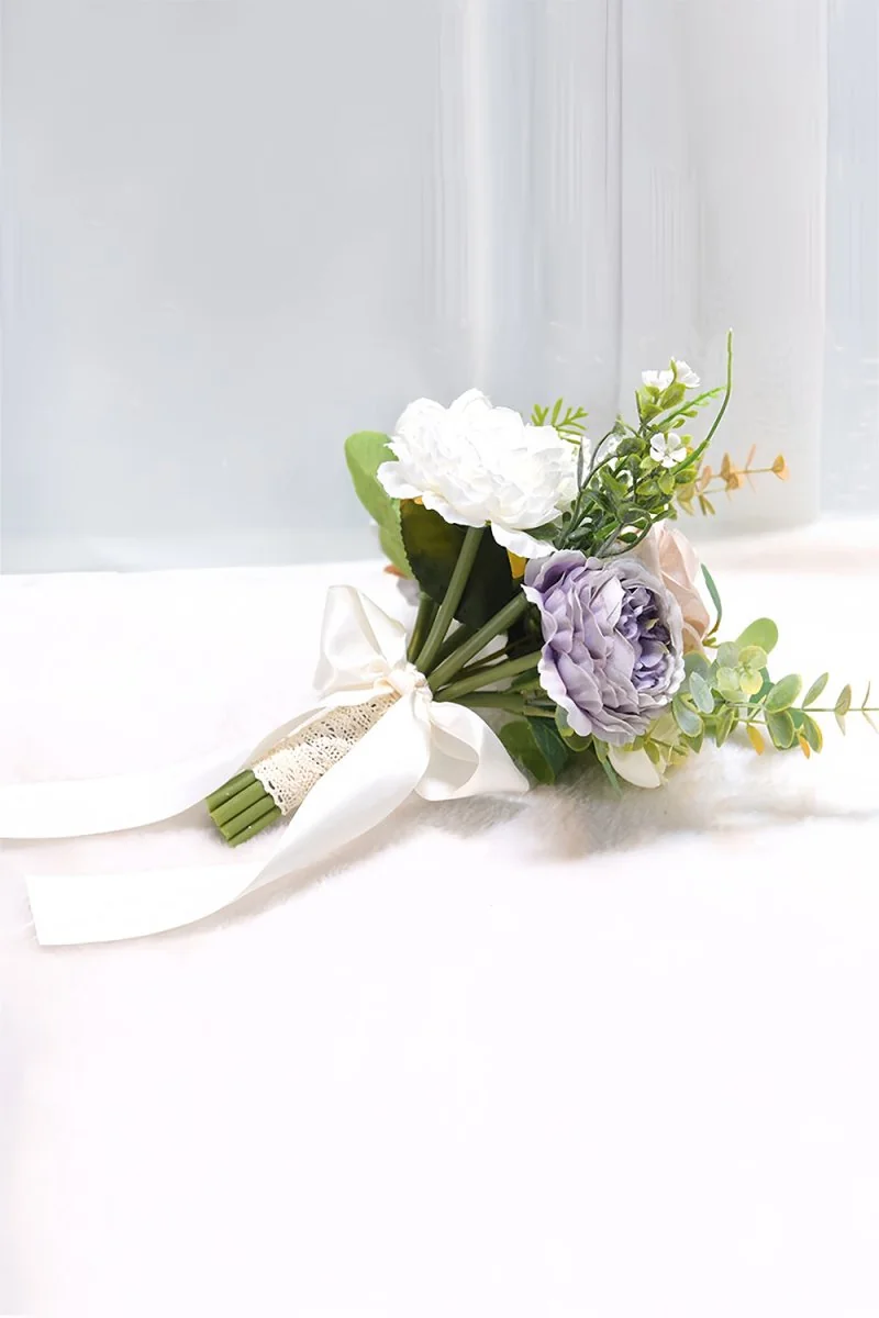 Create an elegant and romantic ambiance with this exquisite bouquet featuring delicate silk roses and peonies in a cascading design. Perfect for bridesmaids or intimate ceremonies, the bouquet measures 20cm in length and 21cm in diameter. Made of high-quality silk. Add a touch of sophistication to your special day!